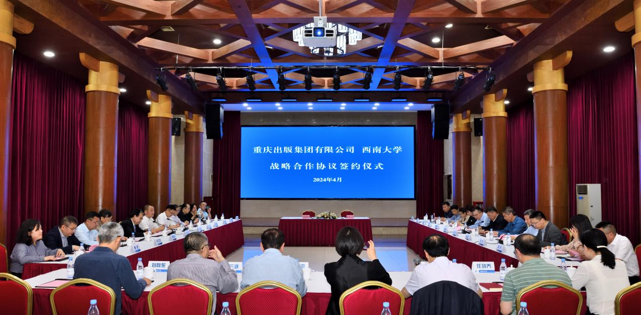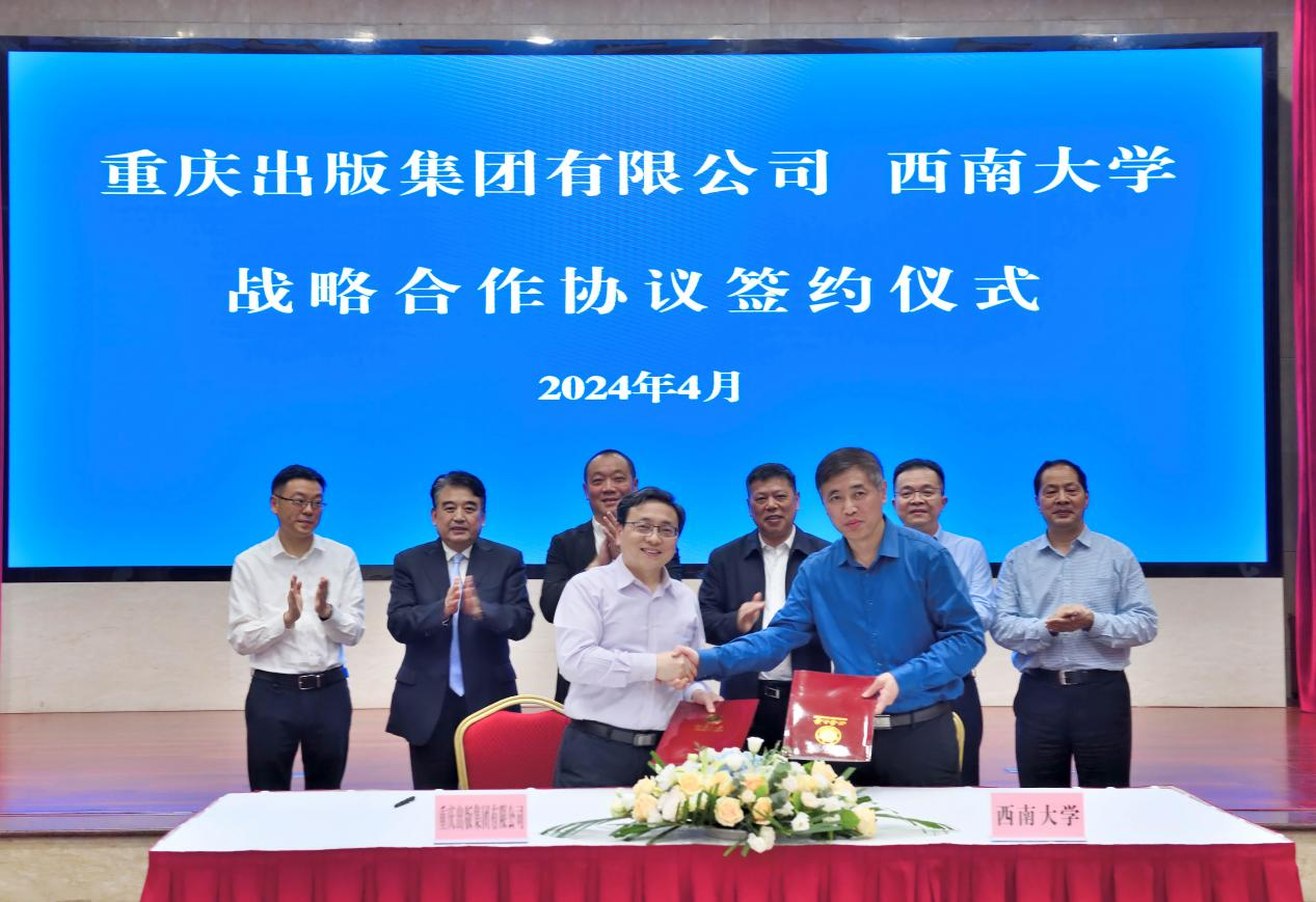 4月29日,“重庆出版集团有限公司 beat365在线唯一官网登录战略合作协议签约仪式”在东方红会议厅举行。重庆出版集团有限公司党委书记、董事长、总经理李斌,副总经理邱振邦,学校党委书记张卫国、党委副书记潘洵,高等学校出版专业教学指导委员会副主任委员兼秘书长、北京印刷学院原副校长王关义,市委宣传部出版处处长蒲洋出席仪式。重庆出版集团、学校有关部门负责人,专家学者代表参会。仪式由新闻传媒学院院长龙伟主持。