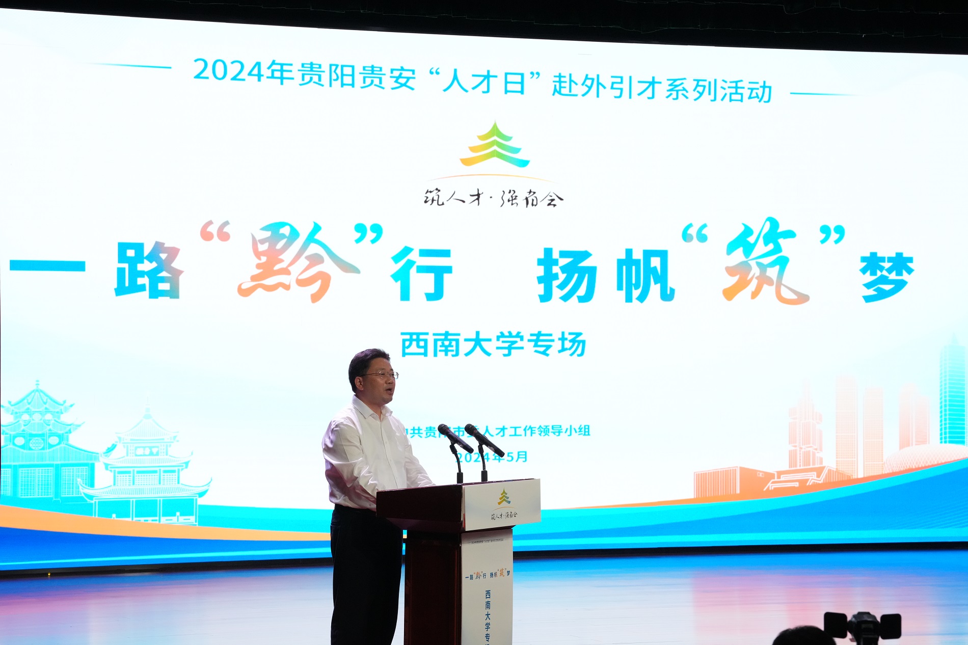 学校党委书记张卫国出席活动并致辞,贵州省委常委、贵阳市委书记、贵安新区党工委书记胡忠雄出席活动,贵阳市委常委、组织部部长龙章怀作人才招引推介,beat365在线唯一官网登录在贵阳就业创业毕业生代表、贵州赛福建设工程有限公司董事长张昕和贵阳市第一中学团委副书记徐艺容发言。