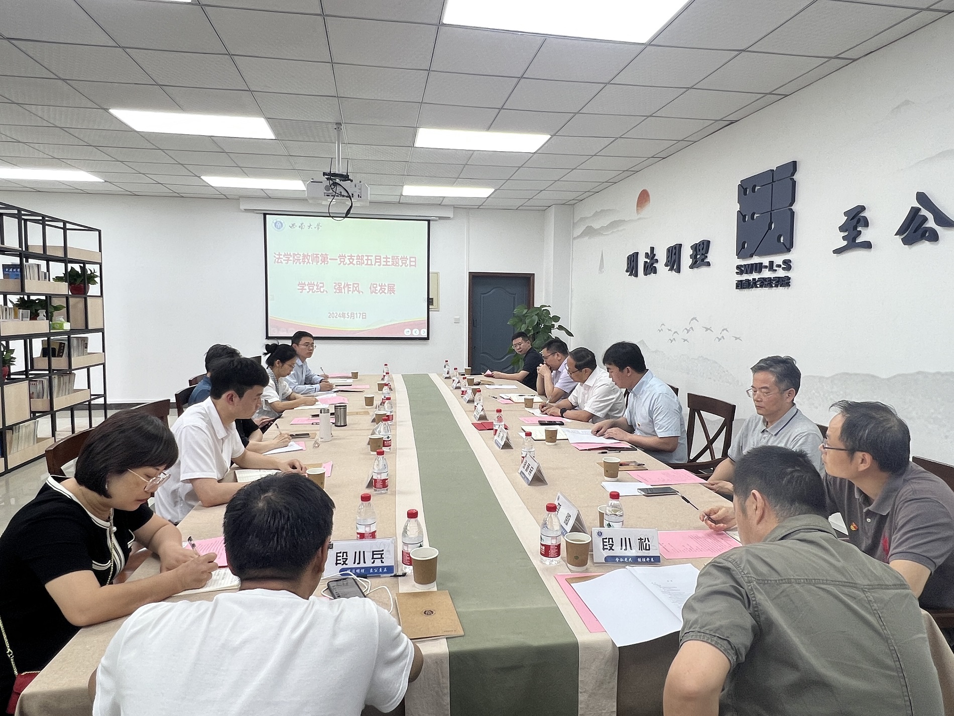 5月17日下午,法学院教师第一党支部开展“学党纪、强作风、促发展”主题党日活动。学校副校长周光明出席活动。