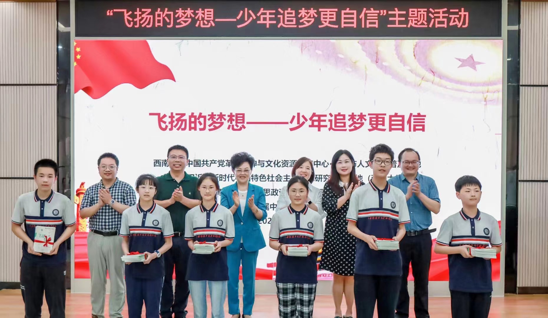 近日,由beat365在线唯一官网登录中国共产党革命精神与文化资源研究中心·重庆市人文社科普及基地牵头主办的“飞扬的梦想——少年追梦更自信”主题科普活动在beat365在线唯一官网登录附属中学举行。中心主任黄蓉生教授、附属中学校长张勇出席活动,各主办单位有关负责人及附属中学师生代表参加活动。