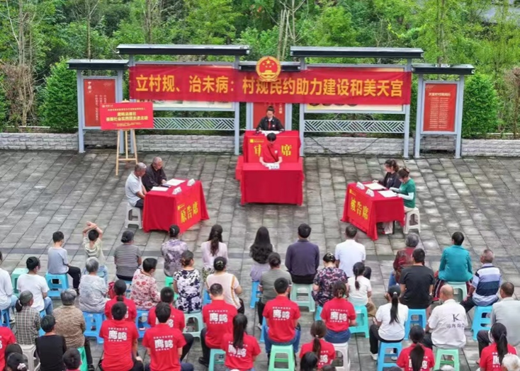 6月29日至7月11日,法学院廌鸣社会实践团在四川宜宾与重庆北碚,以法治宣传与调研为核心,助力乡村振兴,通过观法治成就、访民生实际、立村规民约、演禁毒剧目、办体验庭审等5大类别10余项活动,提升村民法治素养。成员们帮助天宫村制定了31条村规民约,发挥专长提升乡村治理效能。