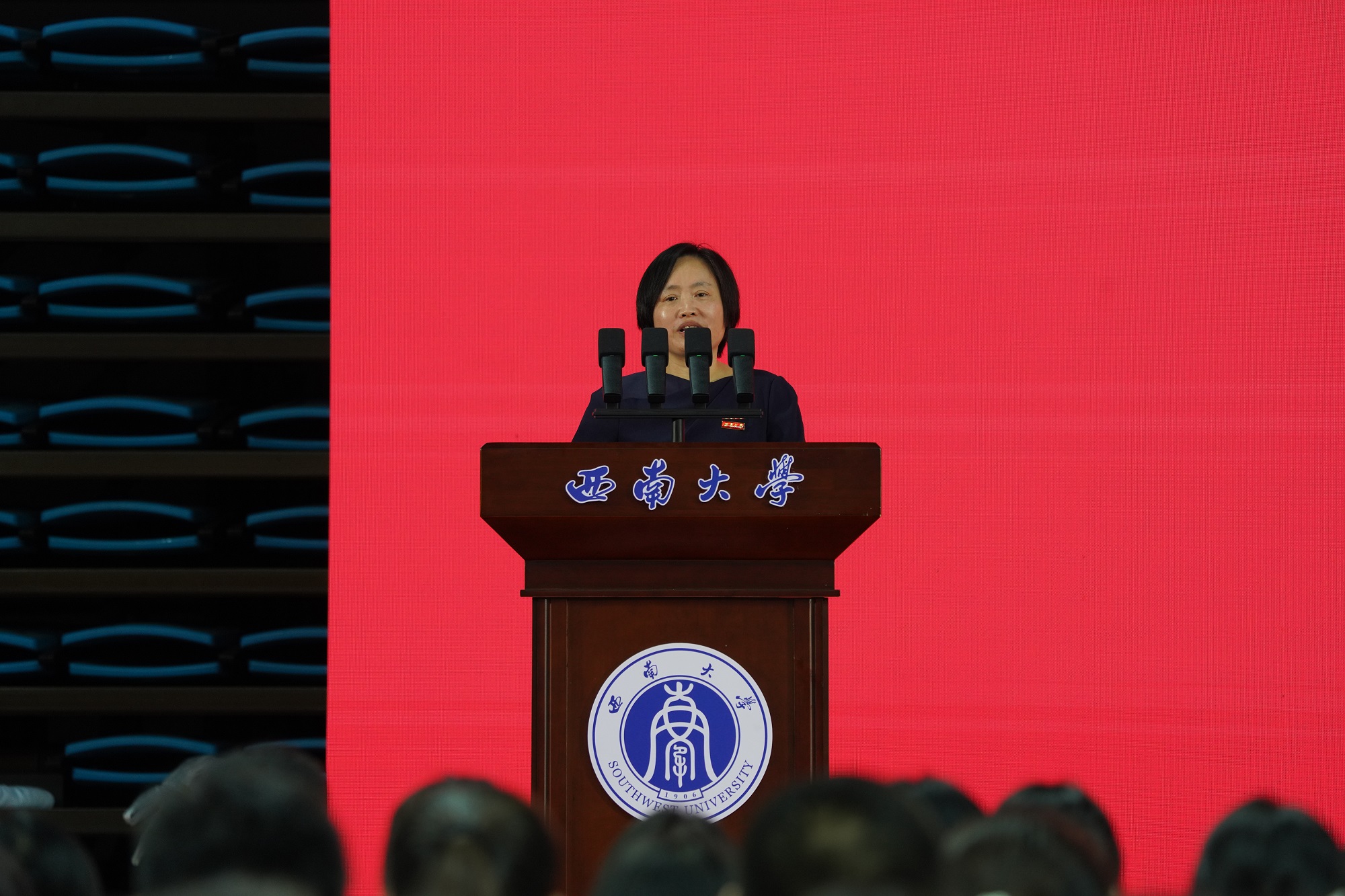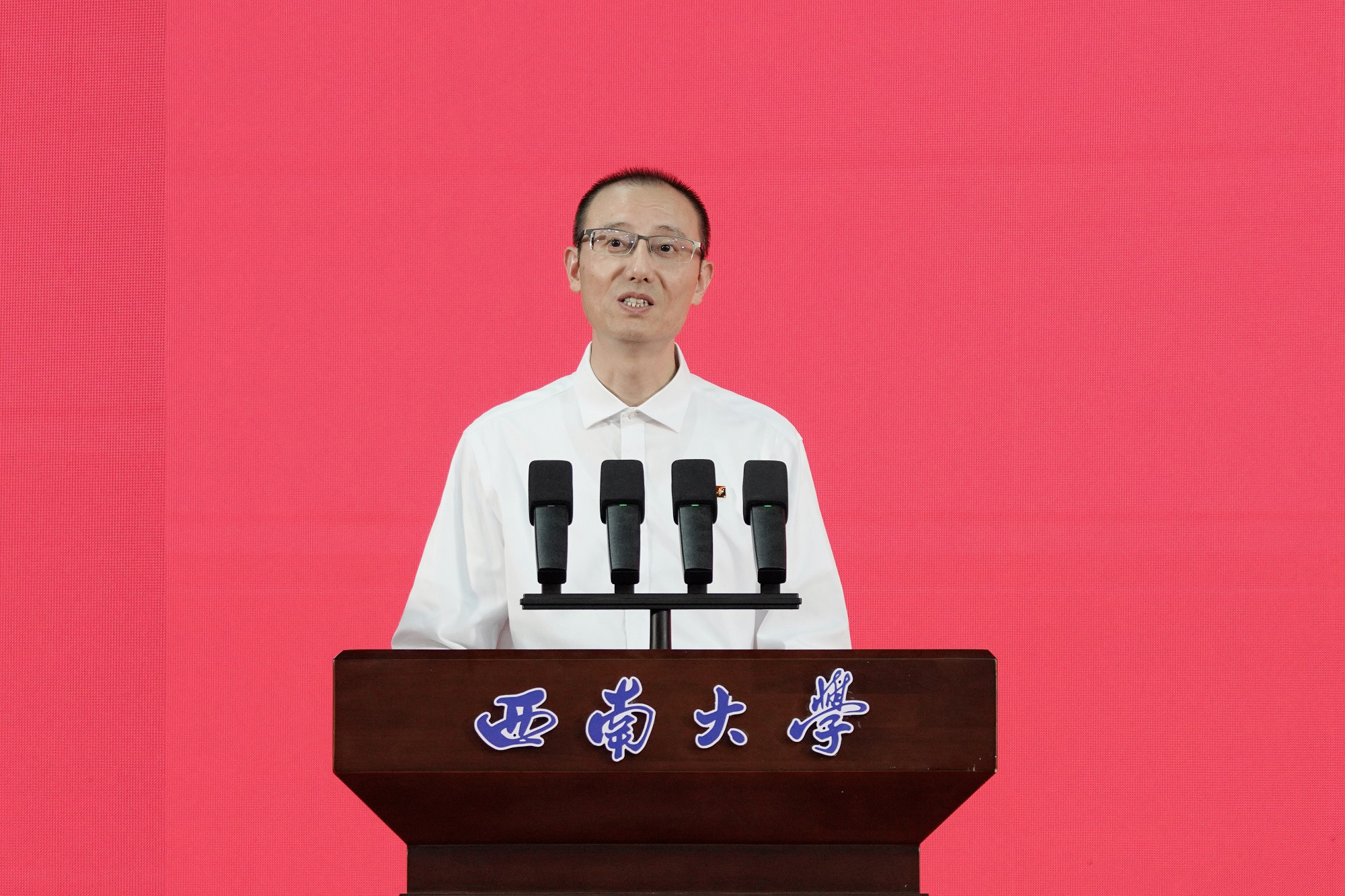 典礼结束后,王进军以“争做学行天下、不负时代的西大研究生”为题为2024级全体研究生集中讲授“开学第一课”。课堂上,他从“两个大局”的角度阐释了“研究”的重要意义,介绍了学校的办学历史和研究生教育发展历程,深情讲述了学校老一辈教育家和科学家躬耕教坛、深耕科研的感人故事,并以学校3个“全国高校黄大年式教师团队”的事迹为例号召同学们在埋头苦学的同时,抬头看国家社会需求,迈步听专业学术交流,俯身在田间地头“自找苦吃”,让青春在实践中闪光,让梦想在奋斗中绽放。