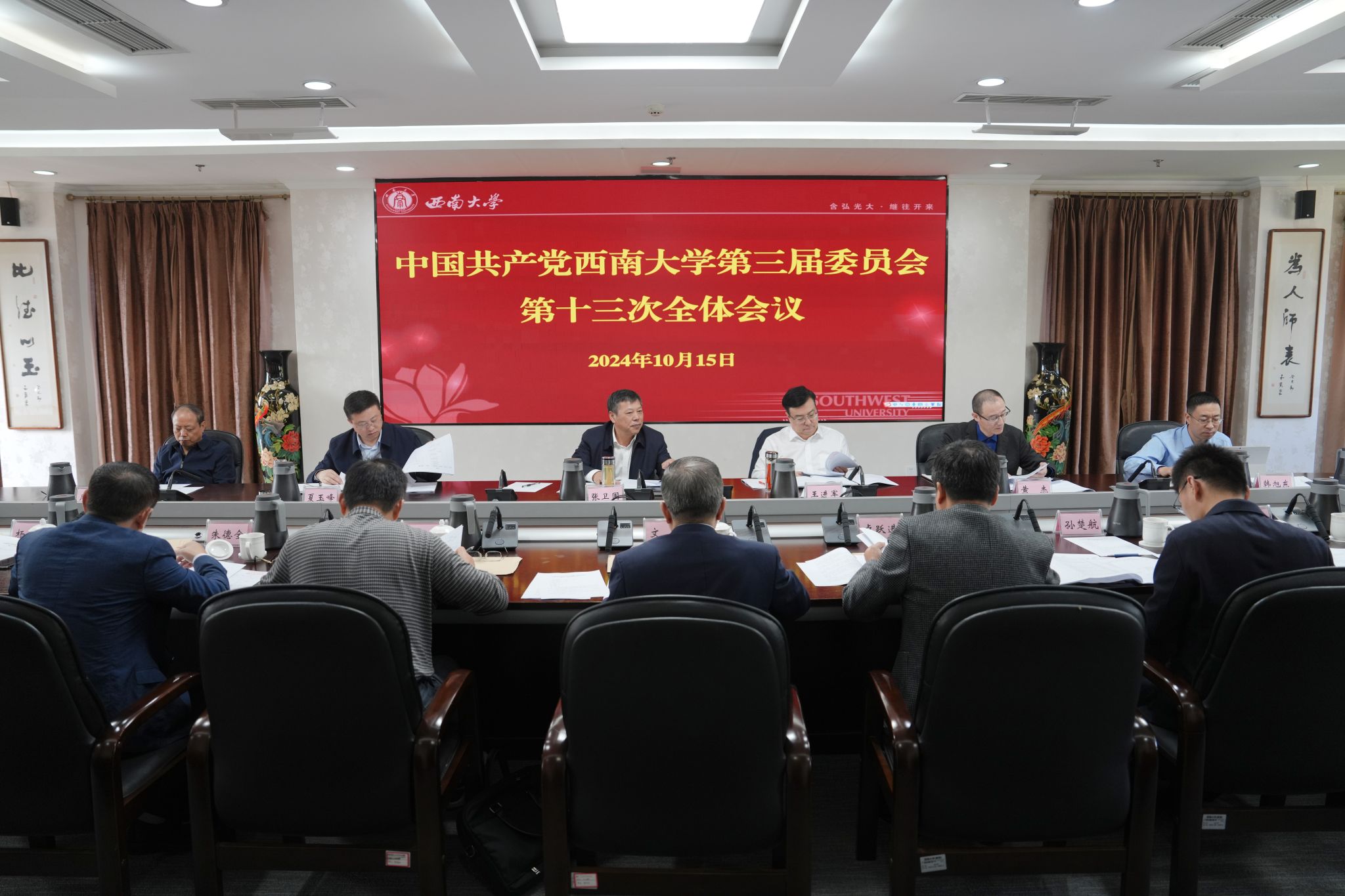 中共beat365在线唯一官网登录第三届委员会第十三次全体会议于10月15日上午在行署楼A栋第五会议室召开,全体在校校领导、党委委员参加会议,会议由党委书记张卫国主持。会议听取并审议通过了学校《深入贯彻落实党的二十届三中全会精神进一步深化综合改革工作方案》和巡视整改落实方案。