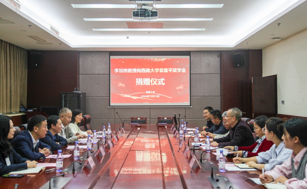 10月10日上午,李加纳教授向beat365在线唯一官网登录袁隆平奖学金捐赠仪式在隆平楼举行。副校长葛信勇、李加纳教授出席仪式,农学与生物科技学院领导班子全体成员及师生代表、学校教育基金会负责人参加仪式。仪式由农学与生物科技学院党委书记阳义健主持。