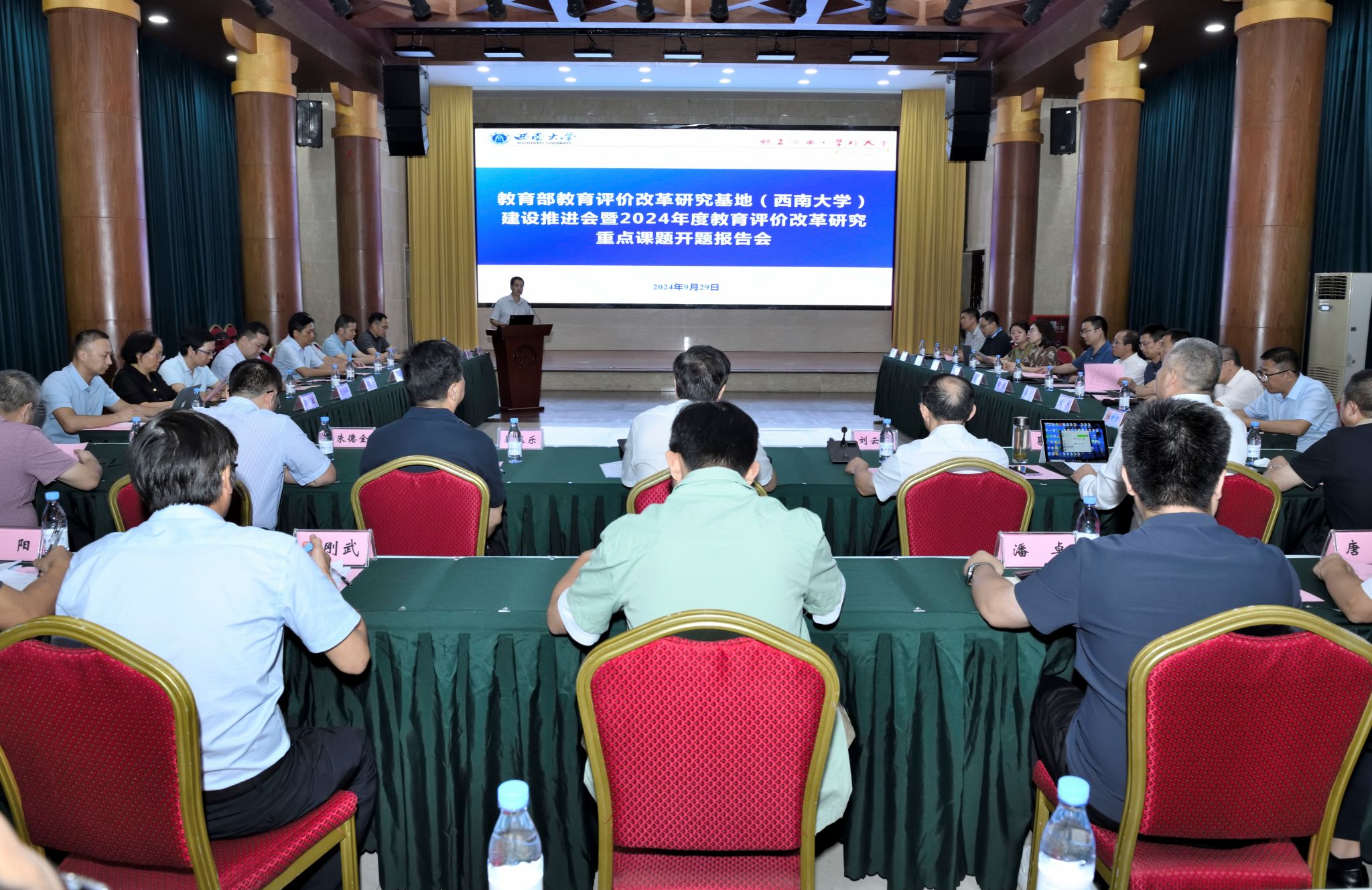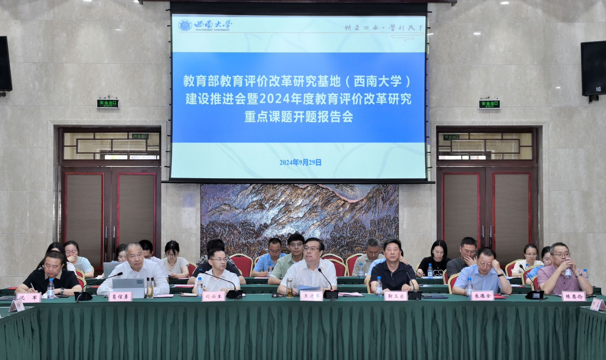 9月29日下午,教育部教育评价改革研究基地(beat365在线唯一官网登录)建设推进会在东方红会议厅召开。深圳大学教育学部主任、文科资深教授靳玉乐,重庆市教育评估院院长刘云生,重庆市教育科学规划办副主任、市教科院科研处处长沈军,教育评价改革研究基地负责人、学术委员会委员以及基地研究人员参会。校长王进军,副校长、教育部教育评价改革研究基地(beat365在线唯一官网登录)主任葛信勇出席会议。学校社会科学处处长王牧华主持会议。