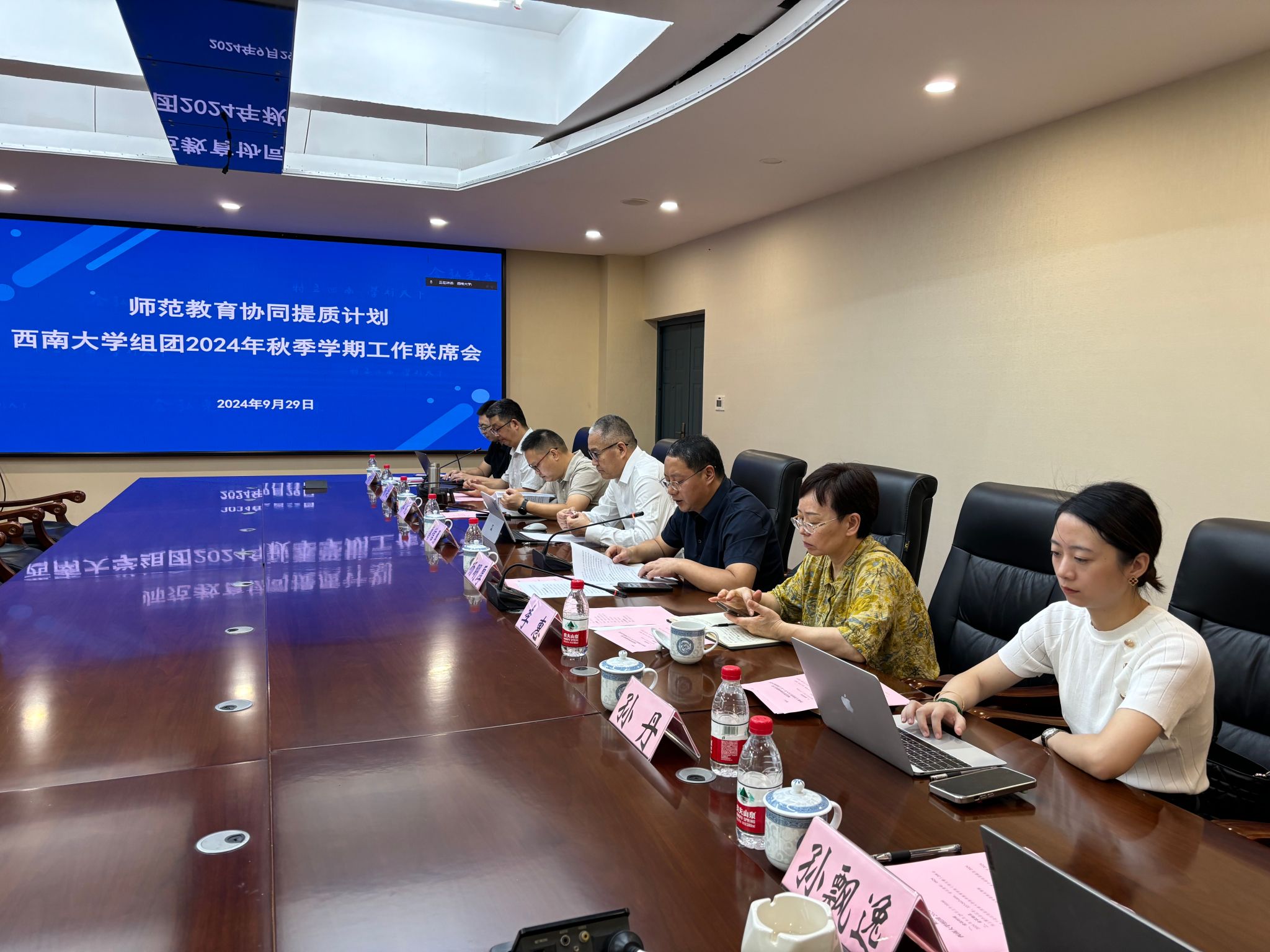 2024年9月29日上午,师范教育协同提质计划beat365在线唯一官网登录组团2024年秋季学期工作联席会议在教师教育学院召开。beat365在线唯一官网登录、新疆师范大学、山东师范大学、重庆师范大学、和田师范专科学校、河西学院、长江师范学院相关校领导及有关职能部门负责人出席会议。会议以线上线下相结合的方式举行。