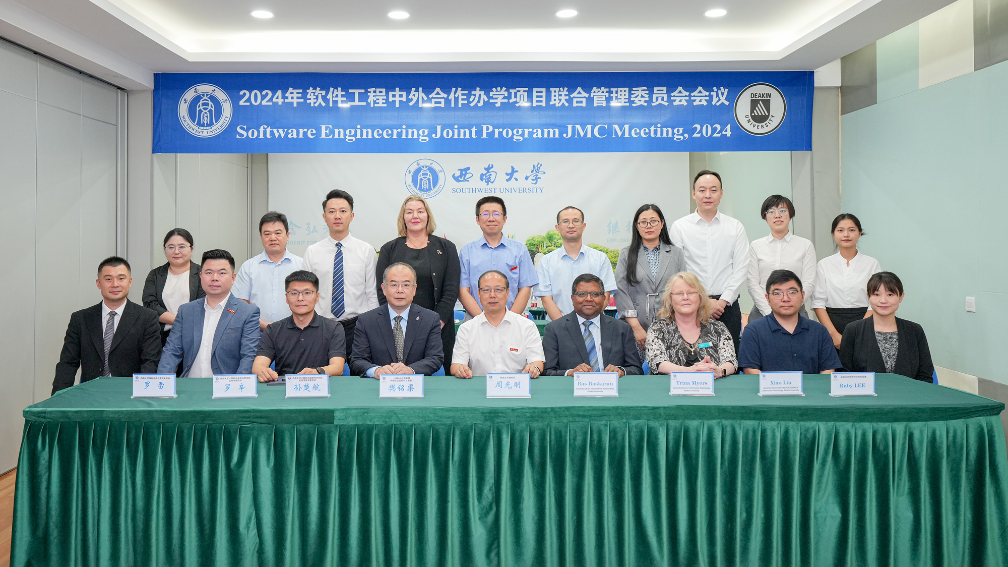 近日,2024年度软件工程专业中外合作办学项目联合管理委员会会议在校召开,副校长周光明、澳大利亚迪肯大学副校长巴斯·巴斯卡兰(Bas Baskaran),以及双方相关单位负责人出席会议。