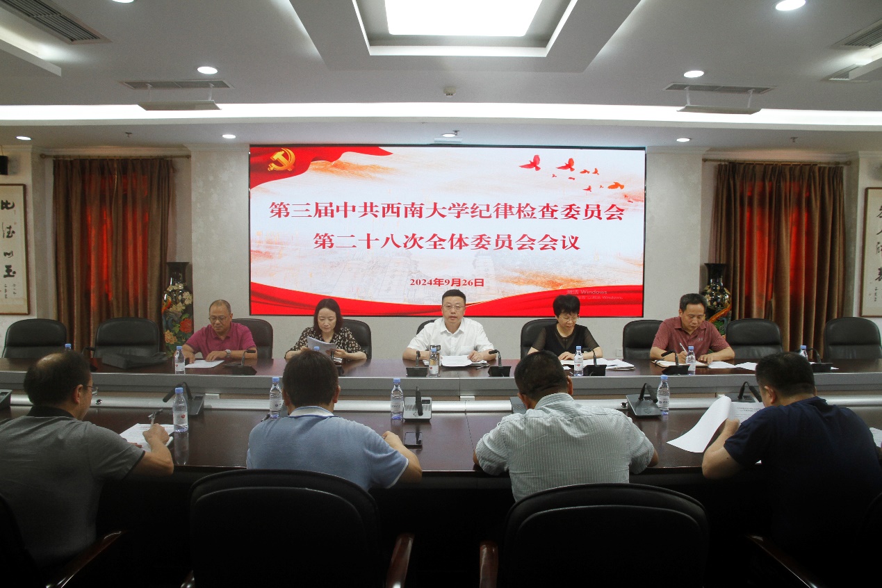 9月26日下午,第三届中共beat365在线唯一官网登录纪律检查委员会第二十八次全体委员会会议在行署楼A栋第五会议室召开。党委副书记、纪委书记夏玉峰主持会议并讲话。学校纪委委员参加会议,纪委办监察处巡察办副处级以上干部列席会议。