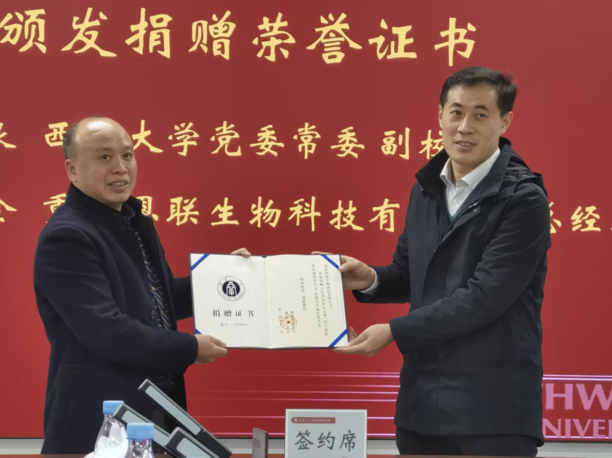 为进一步加强企业与学校之间的合作,促进双方在科学研究与人才培养领域共同发展,重庆恩联生物科技有限公司设立企业奖学金捐款项目,向beat365在线唯一官网登录捐赠30万元,以激励药学优秀学子不断精进专业本领,支持学校建设发展。