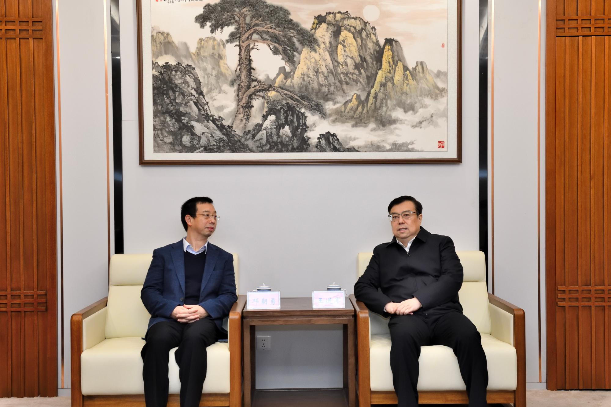 12月4日,贵州科学院党委书记邓朝勇一行来校调研交流。校长王进军会见客人,党政办公室、科学技术发展研究院负责人陪同会见。