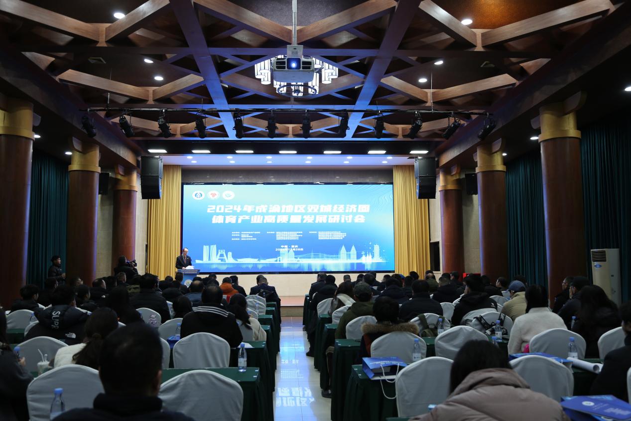 日前,2024年成渝地区双城经济圈体育产业高质量发展研讨会在学校举行,重庆市体育局二级巡视员何晓波、四川省体育局二级巡视员文碧伟、学校校长王进军、成都体育学院党委书记舒为平等领导和来自川渝两地体育产业的政产学研代表等50余位嘉宾出席,共同探讨如何全面贯彻新发展理念,以新质生产力推动成渝地区双城经济圈体育产业高质量发展,为建设体育强国贡献川渝力量。大会开幕式由学校党委副书记黄杰主持。