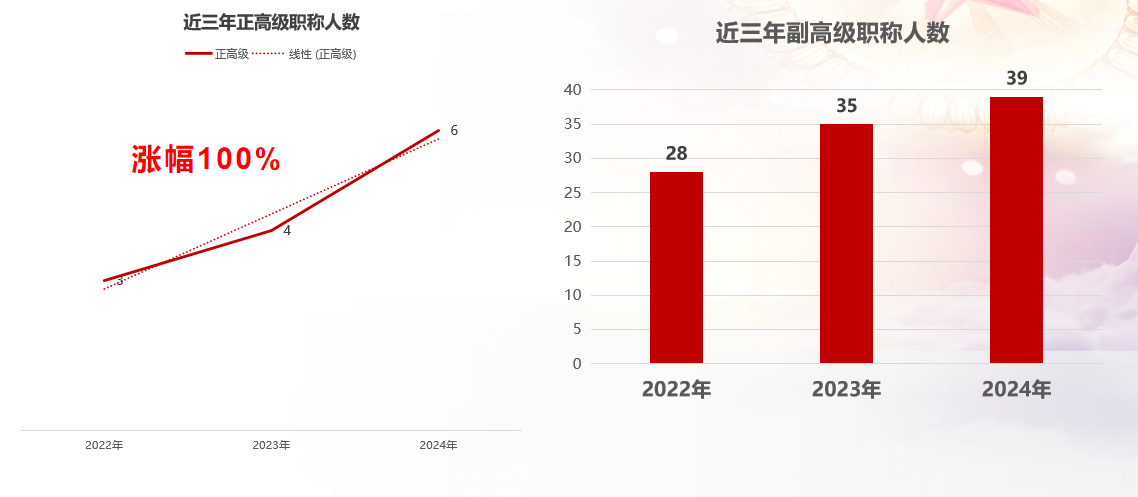 2022年—2024年,学院副高级以上教师人数稳步提升。