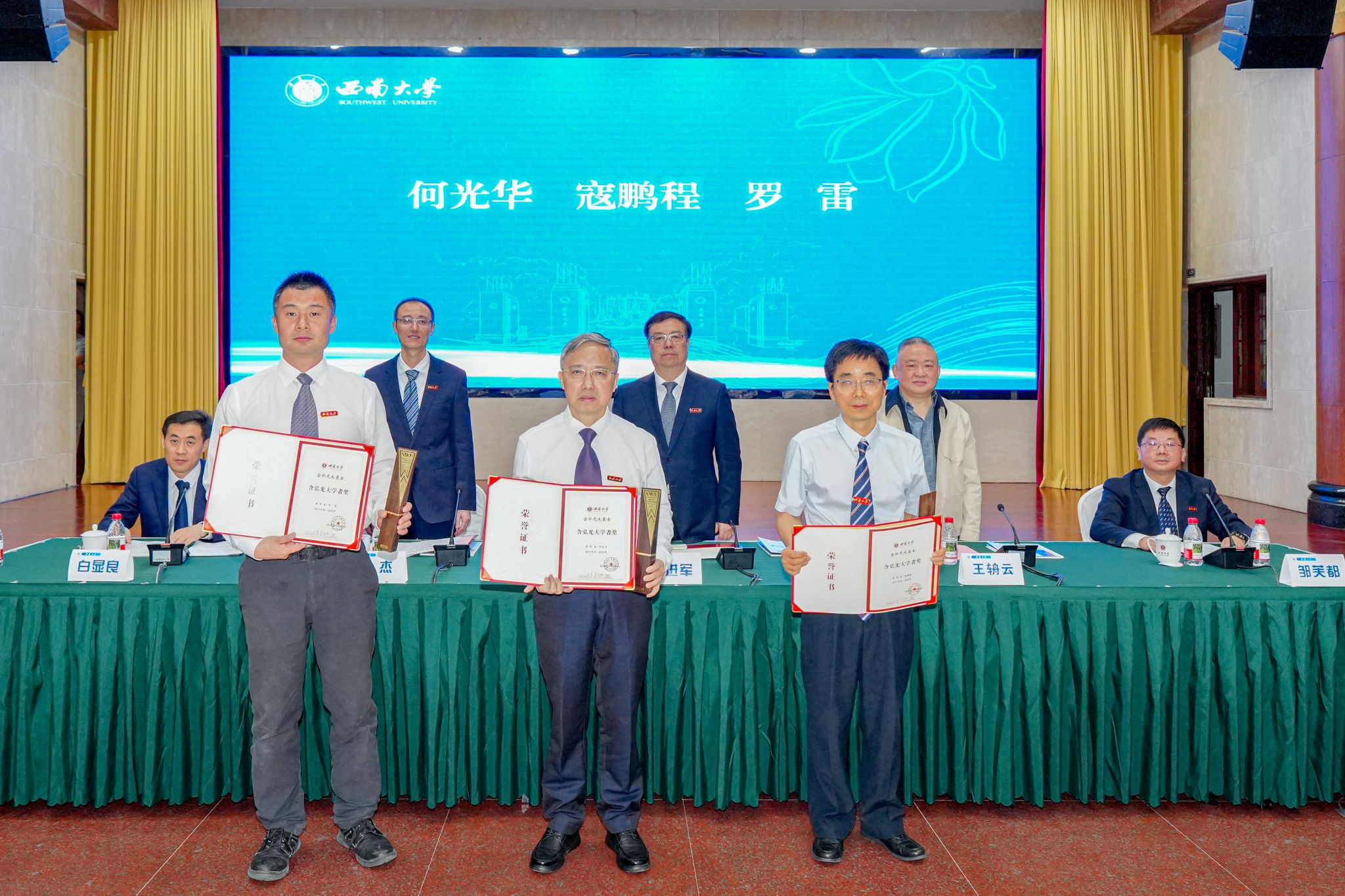 典礼现场播放了基金评审及获奖师生风采视频。副校长邹芙都宣读首届“含弘光大学者奖”获奖名单,药学院罗雷、农学与生物科技学院何光华、文学院寇鹏程三位教师登台领奖。在“学生成长成才奖”颁奖环节,党委副书记黄杰为40名获奖学子颁发证书。资源昆虫实验室硕士生陈施彤作为代表发言。