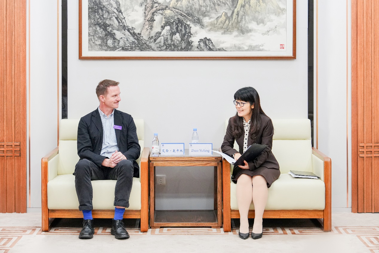 赵玉芳对艾登·麦卡瑞的到访表示欢迎,简要介绍了学校办学特色及国际化发展成就,回顾了两校的合作历史。她希望以此次会谈为新起点,推进体育科学、新闻传媒等学科深入合作,积极探索学生联合培养、短期访学等多样化合作模式,全面提升两校科研协作与人才培养质量。