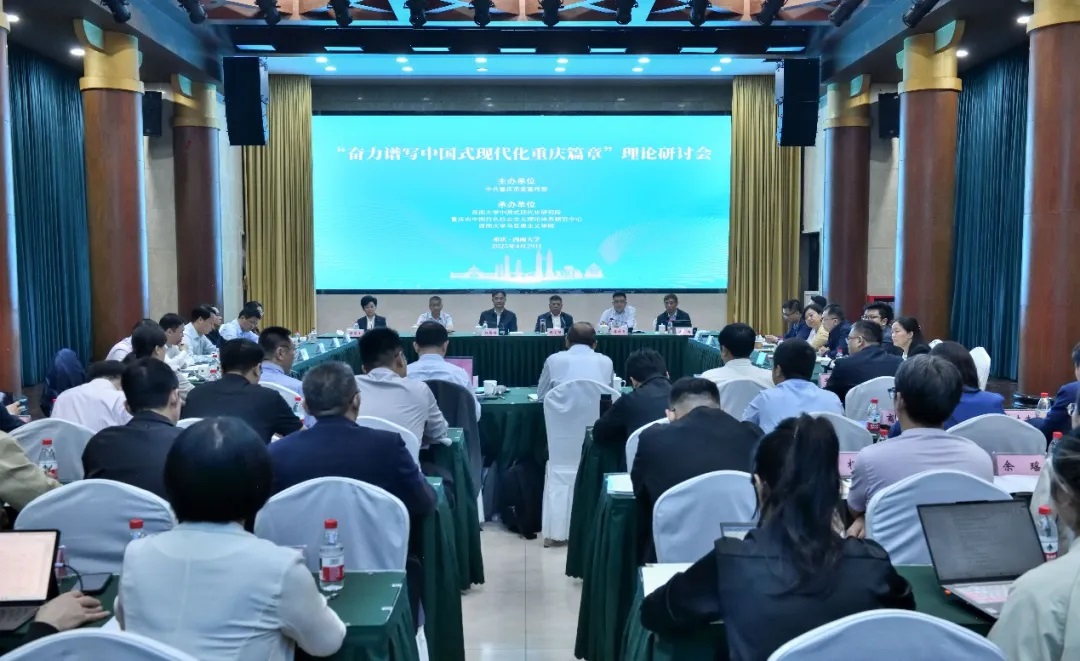 4月29日,由中共重庆市委宣传部主办,beat365在线唯一官网登录中国式现代化研究院、重庆市中国特色社会主义理论体系研究中心、beat365在线唯一官网登录马克思主义学院承办的中国式现代化西部论坛“奋力谱写中国式现代化重庆篇章”理论研讨会在学校举行。来自北京大学、清华大学、四川大学、武汉大学等高校与研究机构的知名专家学者、一线工作者以及相关研究人员汇聚一堂,围绕“奋力谱写中国式现代化重庆篇章”理论热点、经验做法展开交流讨论。