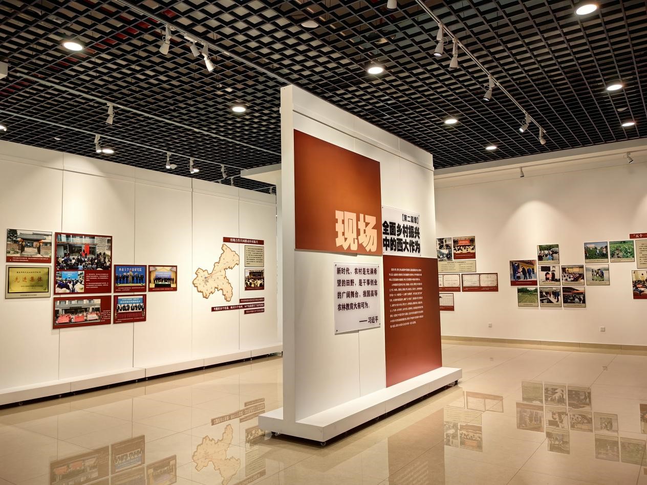 展览分为“回首:百年乡村建设中的西大身影”“现场:全面乡村振兴中的西大作为”“展望:农业强国建设中的西大担当”三个篇章,集中呈现了历史上的中国乡村建设试验、学校培养乡村建设人才的早期探索、新时代“五大振兴”中的西大贡献等内容,展示了学校通过科教扶贫、校地合作、人才培养、成果转化、智库建设和国际交流传播等途径助力乡村振兴的成果与作为。