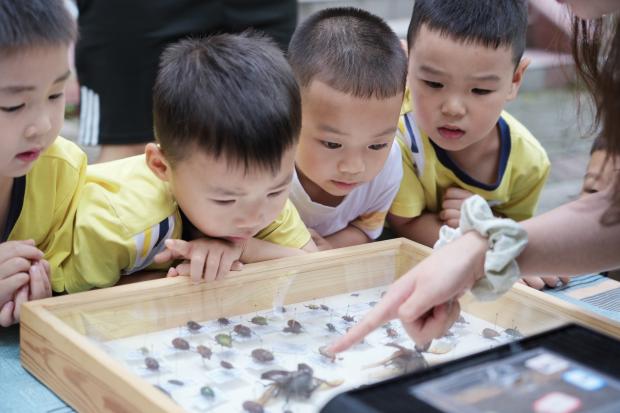 30日上午,幼儿园联合第一、二批“科学家精神启蒙”课程生态联盟成员单位在园内共同构建沉浸式科创探索场景,通过“昆虫博物馆”“恐龙考古”“磁力小火车”“反重力陀螺仪”“AI机械臂书写”“声控小车拼装”“中医药香囊制作”“趣味折纸”“现榨橙汁”和“垃圾分类”等项目,将科学原理、传统文化和实际生活融合,引导儿童在动手实践中激发兴趣、探索奥秘,做到玩中学、做中思。