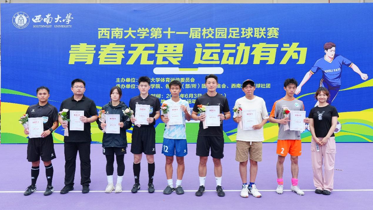 体育学院李家春、郝思裕荣膺赛事“最佳球员”称号;李厚松、杜增毅摘得“金手套”奖;地理科学学院朱俊成与体育学院曾炳源、阿力三人共享“金靴”殊荣。裁判团队中,赵泓杰、郭峻麟、赵宇皓、郭少宇、田春宇五位裁判获“优秀裁判员”称号;黄无为、张子康、刘宇权三位教练被授予“人气教练员”奖项。