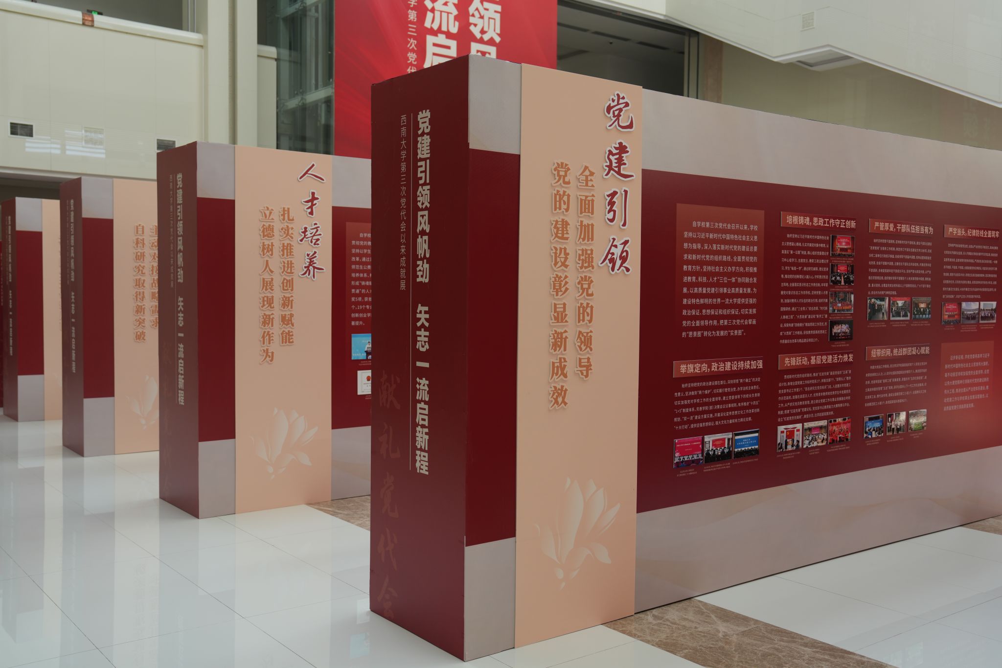 据悉,本次展览分“职能领域”和“二级党组织”两个展区,全景式展现过去近六年来,学校以高质量党建引领事业高质量发展的亮点业绩。展览面向全校师生及关心学校建设发展的社会各界人士开放。