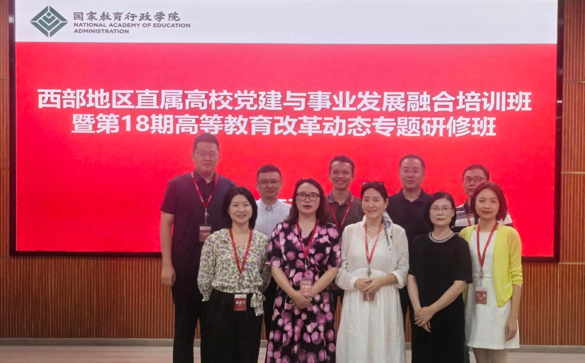 7月6日至12日,学校组织新提任中层领导干部参加国家教育行政学院西部地区直属高校党建与事业发展融合培训班。培训以“高校党建与事业发展融合”为主题,组织参训学员深入学习新时代高校党建工作的形势与任务、理论与方法,交流研讨深化高校党建与事业发展融合的经验做法。