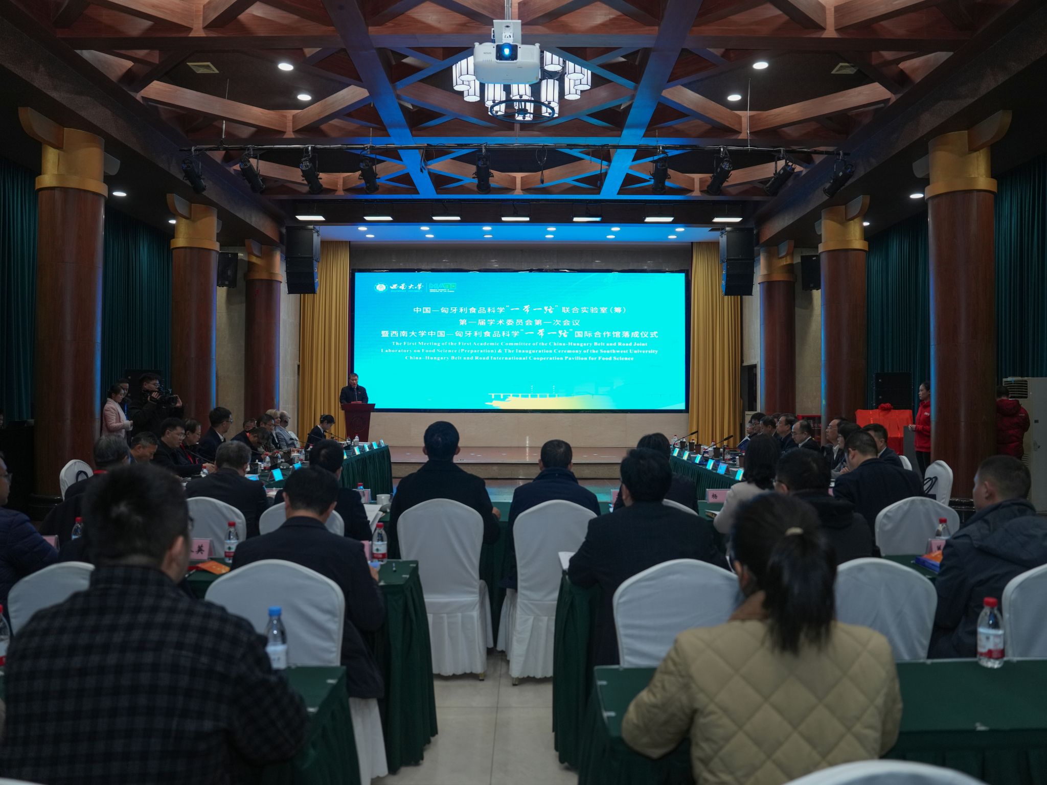 12月15日,中国—匈牙利食品科学“一带一路”联合实验室(筹)第一届学术委员会第一次会议暨beat365在线唯一官网登录中国—匈牙利食品科学“一带一路”国际合作馆落成仪式在学校举行。会议围绕中匈食品科学领域科技合作与交流,聚焦联合实验室(筹)建设与运行机制,系统推进双方在相关领域的协同创新与务实合作。来自重庆市有关部门、匈牙利驻重庆总领事馆、中国食品科学技术学会以及中匈双方高校、科研机构的领导与专家代表参加活动。