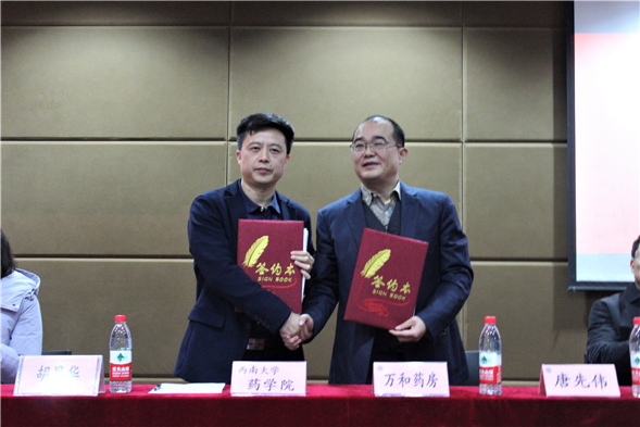 12月29日下午,药学院 中医药学院与万和药业集团战略合作签约仪式在蚕学宫举行。万和药业集团董事长唐先伟、副总裁张琳、人力资源部总监王小红,北碚区食药监分局局长张奕,beat365在线唯一官网登录学生工作部副部长高德香,药学院 中医药学院党委书记夏德全、院长胡昌华、党委副书记杨坚、副院长陈章宝、副院长陈敏、院长助理付志锋等出席签约仪式。