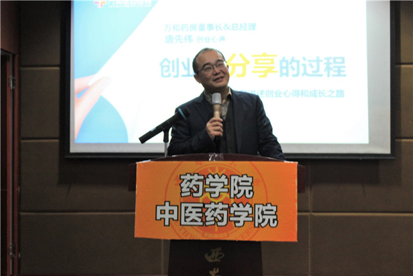 签约仪式上,杨坚副书记宣读签约内容,表示双方主要合作方向是建立beat365在线唯一官网登录药学院教学药房,拟在beat365在线唯一官网登录药学院新大楼建立万和智慧药房,设立万和医药奖学金等五个方面。胡昌华院长代表药学院与唐先伟董事长进行签约仪式。随后,唐先伟董事长作了“创业是分享的过程”为题的精彩报告。