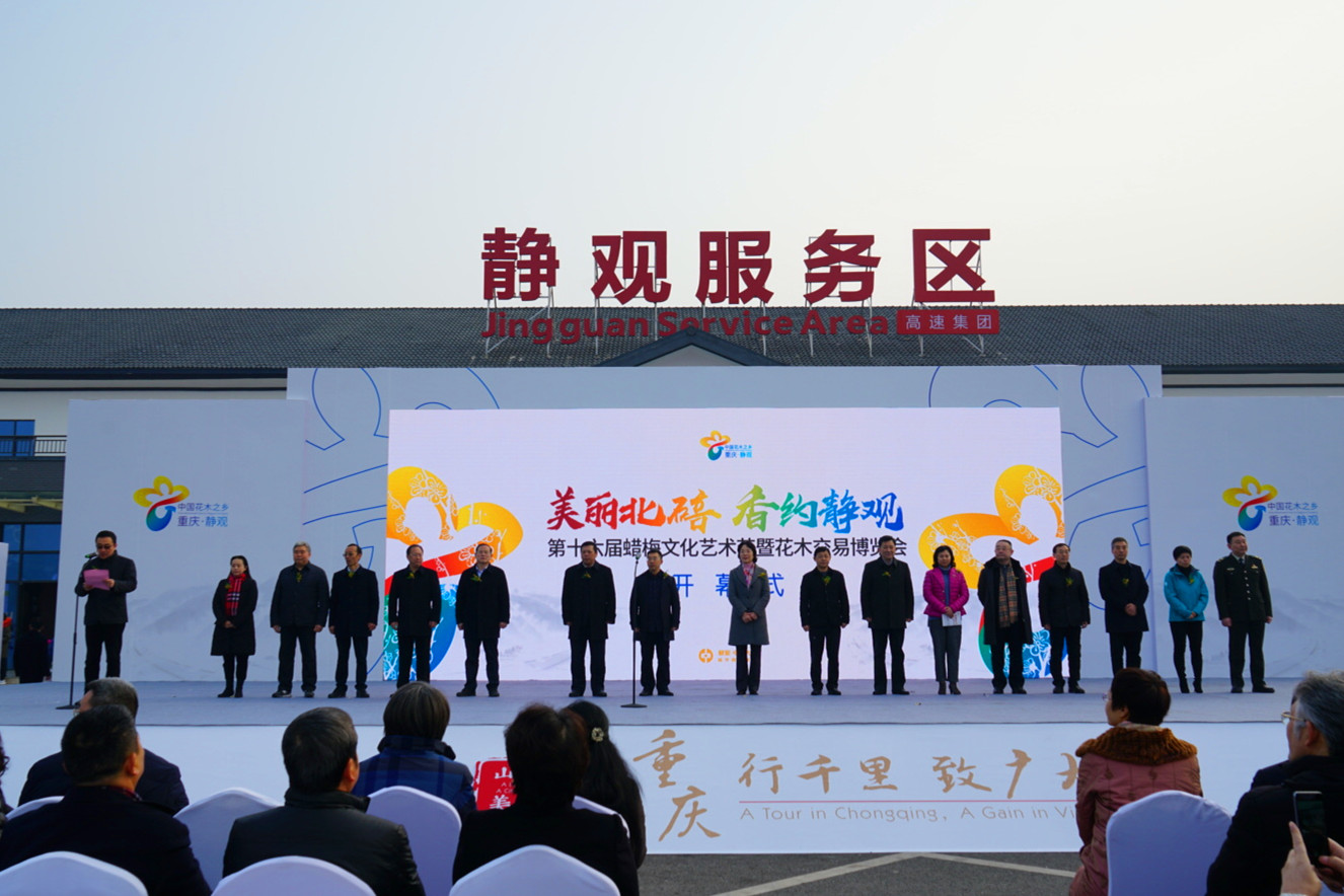 1月5日,第十六届中国花木之乡·静观蜡梅文化艺术节暨花木交易博览会开幕式在北碚区静观镇举行,重庆市副市长潘毅琴,北碚区委书记周旭、区长何庆,学校校长、党委副书记张卫国,副校长王进军等领导出席开幕式。学校校长办公室、校地合作处等单位负责人参加相关活动。
