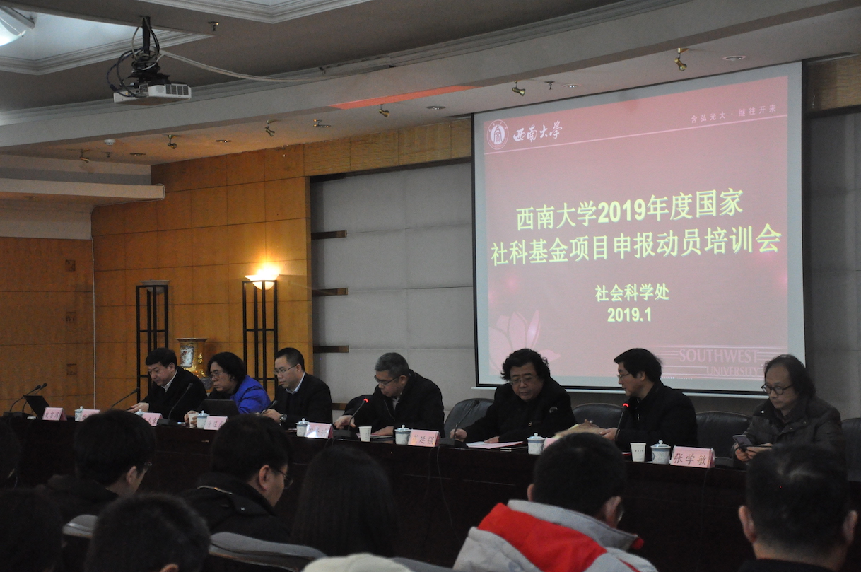 2019年度国家社科基金项目项目申报工作已全面启动,为准确把握国家社科基金项目的选题精神和论证规范,提高项目申报质量,学校于1月9日在田家炳教育书院八楼举办“2019年度国家社科基金项目申报动员培训会”。出席动员培训会的有重庆市社科联党组成员阳奎兴副主席,beat365在线唯一官网登录副校长崔延强,重庆市社科规划办主任唐旺虎,beat365在线唯一官网登录经济管理学院王志章教授、西南民族教育与心理研究中心主任张学敏、beat365在线唯一官网登录历史文化学院田阡教授。学校从事人文社会科学研究的广大科研人员、拟申报2019年度人文社科基金项目的科研人员、文科单位主管科研的领导和科研秘书共200余人参加了会议。会议由社科处处长刘义兵主持。