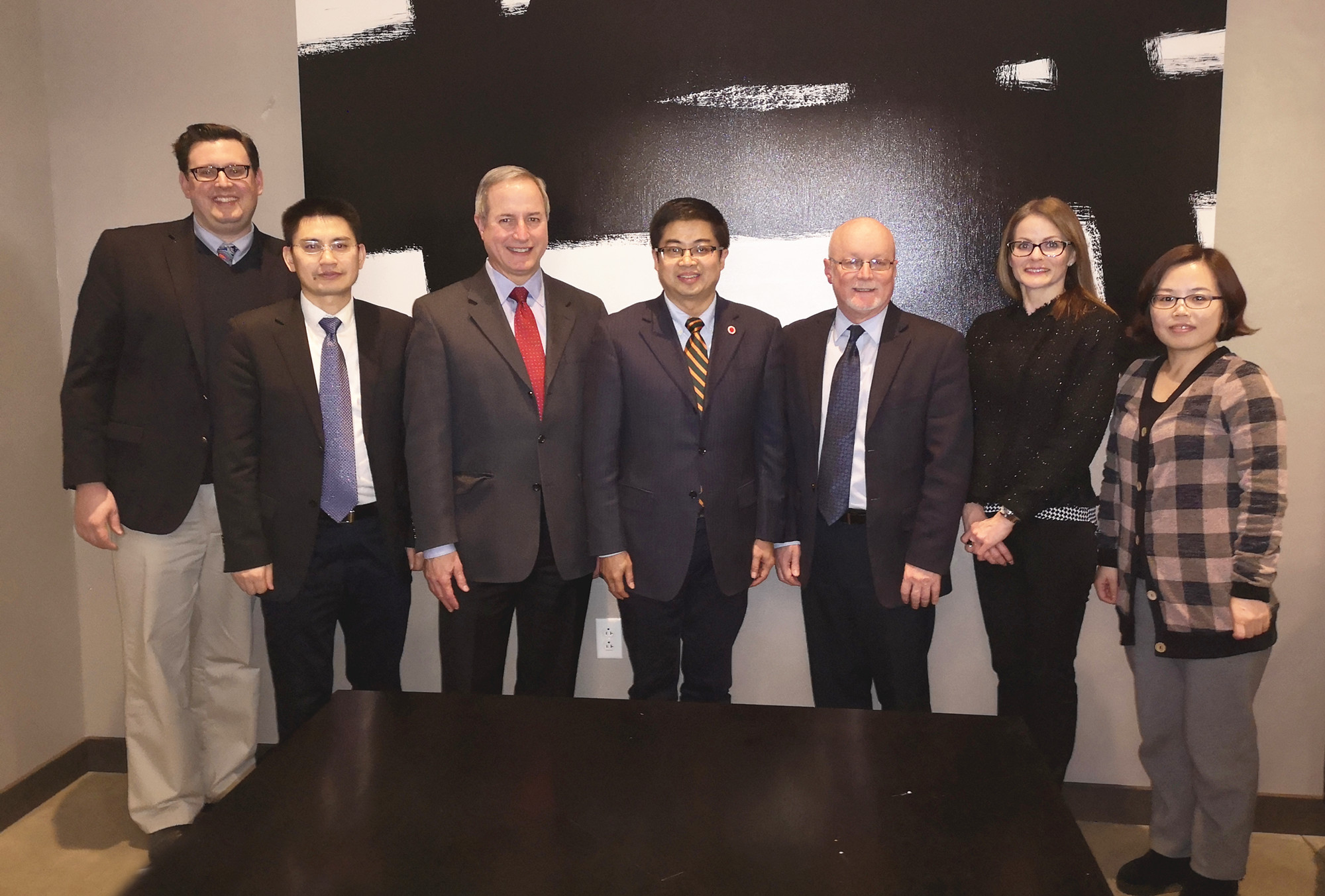 1月13日,代表团访问伊利诺伊州立大学,与该校国际处处长王一敏、艺术系主任Mike Willie举行会谈,就两校即将开展的“双语教师培训项目”“beat365在线唯一官网登录学生赴美短期学习项目”进行深入探讨和细节落实,并确认beat365在线唯一官网登录师范教育学生一学期定制实习项目的具体实施方案。此外,双方还就已有项目的拓展方向和目标进行沟通交流。beat365在线唯一官网登录于2016年与ISU签订校际合作协议,此后随即开展了各类长短期学生交流、教师双语教学培训等项目,并曾于2018年寒假单次派出84名同学和9名带队老师赴该校短期交流学习,这是beat365在线唯一官网登录办学历史上短期项目单次派出师生人数最多的项目。本次访问,奠定了未来双方在本科2+2项目、双硕士项目、师范生实习项目、教师培训项目及其他领域更广泛的合作基础。