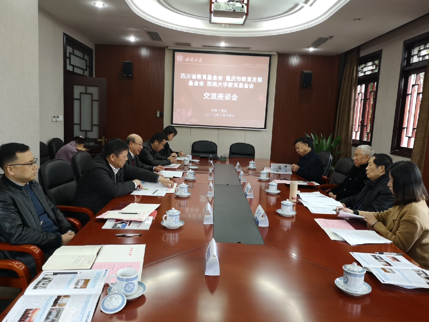 3月14日上午,四川省教育发展基金会理事长、原四川省副省长徐世群,重庆市教育发展基金会副理事长刘路明、李先国一行来校交流,校长张卫国出席座谈。学校对外联络部部长、基金会秘书长龚常智,对外联络部副部长、基金会副秘书长刘涛及三方基金会相关人员参加会议。座谈会由张卫国校长主持。