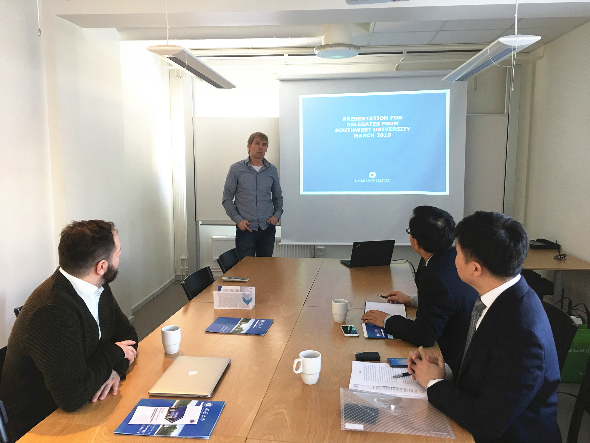 学校代表团拜访了该校物理系主任Thomas Wagberg、国际办公室主任Jens Zamanian等,感谢该校物理系过去十年里接收并培养了学校100名物理学优秀本科交换生。双方就开展学校物理学专业“3+1”本科双学位联合培养、“1+1+1”硕士双学位联合培养、科研合作和教师互访等合作事宜进行了沟通交流,并达成合作共识。随后,代表团拜访了该校国际处副处长Helena Gradin,宾主回顾了已有的合作项目和成果,畅谈在物理学科合作交流基础上拓展其它学科领域的师生交流、科研合作等项目。