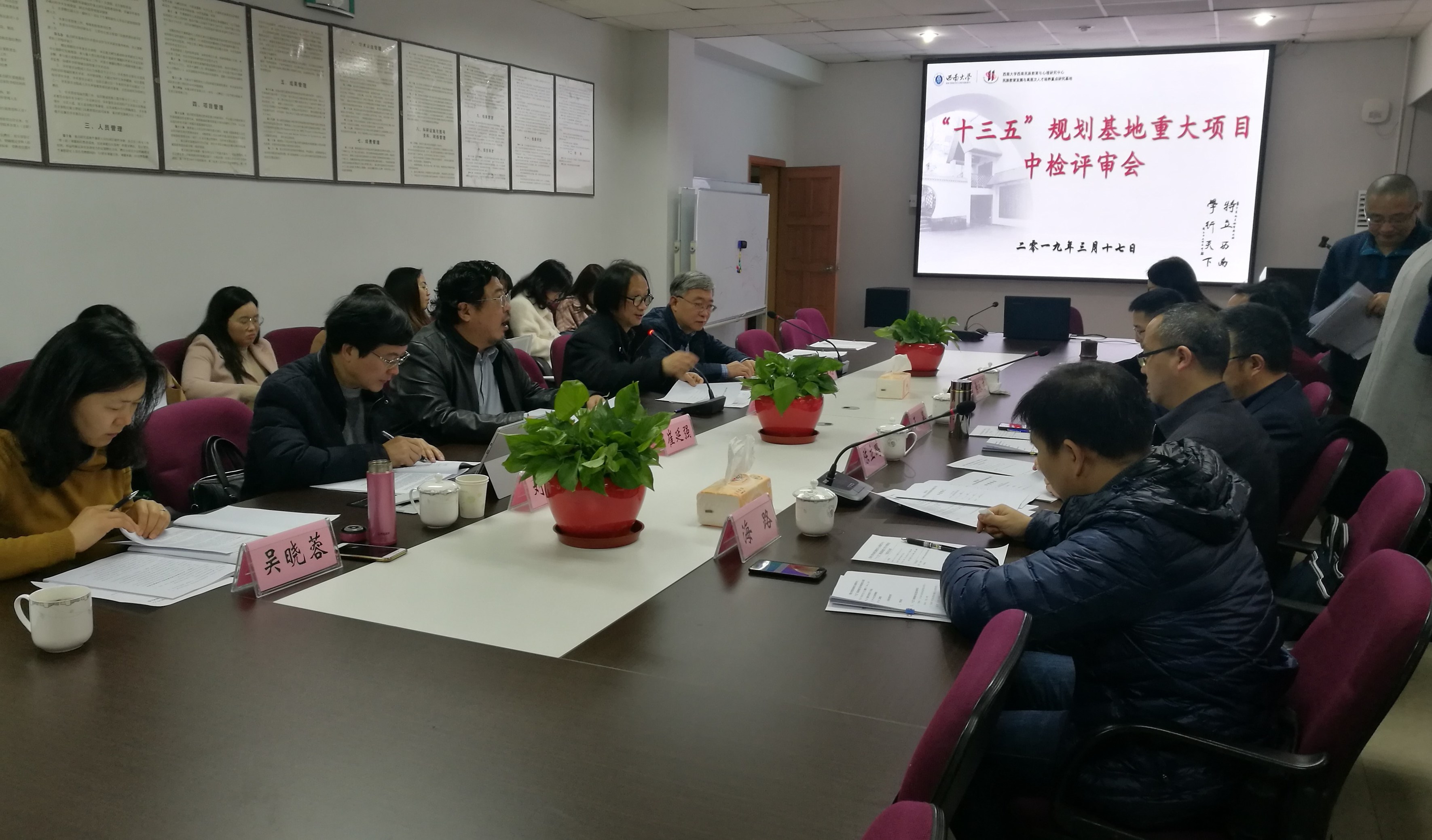 3月17日上午,教育部人文社会科学重点研究基地beat365在线唯一官网登录西南民族教育与心理研究中心(以下简称“中心”)举行“十三五”规划教育部人文社会科学重点研究基地重大项目中期检查评审会。校外评审专家云南师范大学、“长江学者”王鉴教授,教育部民族教育发展中心科学管理处处长陈立鹏教授,中央民族大学教育学院常永才教授,以及中央民族大学《民族教育研究》杂志社海路副教授参加评审,王鉴教授任组长。校内评审专家beat365在线唯一官网登录副校长崔延强教授、社科处处长刘义兵教授、教育学部吴晓蓉教授及中心主任张学敏教授和么加利教授参加评审。会议由张学敏主任主持。