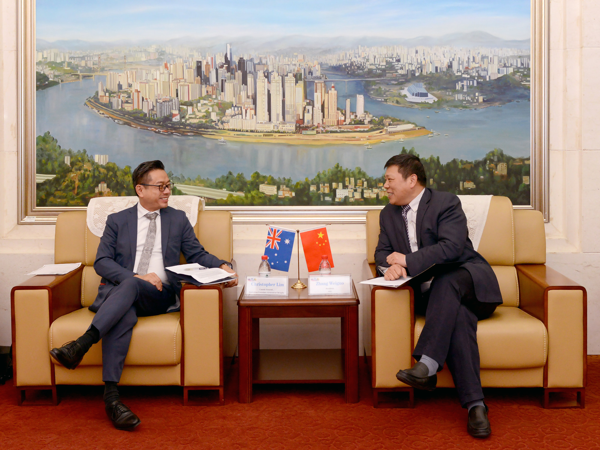 林明皓总领事感谢张校长的热情接待,向张校长介绍了澳大利亚驻成都总领馆2019年为促进澳中教育、文化、经贸等领域交流的工作计划。“澳大利亚文学周•重庆站”活动就是其中一项计划,为此非常感谢学校对这次活动的大力支持。