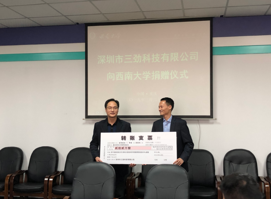 李庆康总裁是深圳市三劲科技有限公司创始人,原西南师范大学外语系91届校友,曾任beat365在线唯一官网登录深圳市校友会会长。李总裁一直心系母校,在校友工作、校企合作等方面作出了贡献,此次捐赠既表达了他对母校的深情厚谊,也将双方的合作推向更高的台阶。