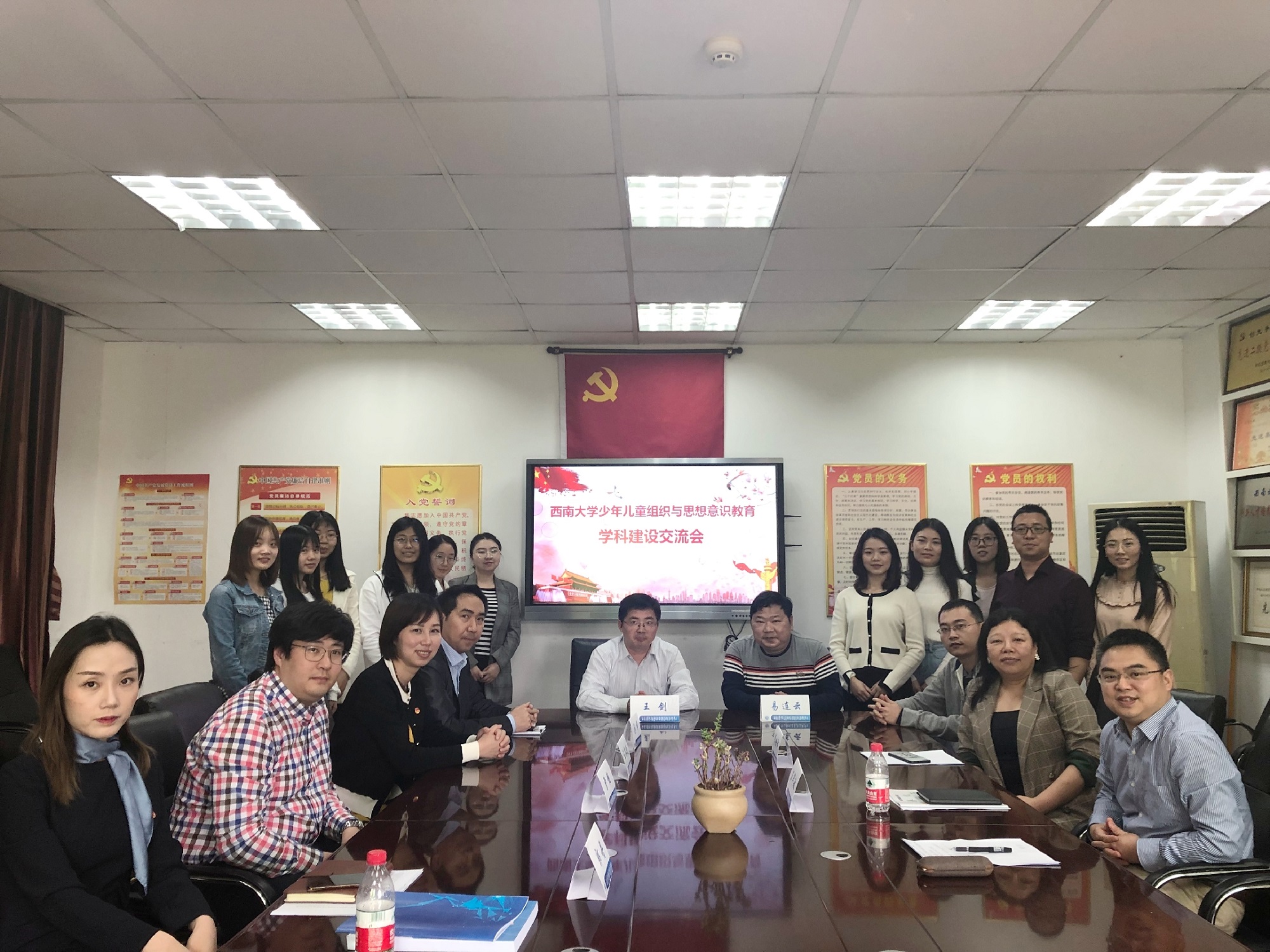 4月11日,团中央少年部宣传教育处王剑处长、曹靓干部一行来到学校少年儿童组织与思想意识发展研究中心进行调研,在教育学部田家炳教育书院315会议室召开了学科建设交流会。重庆团市委中少部部长、市少工委副主任范伟、重庆北碚区团区委书记王冬妮、北碚区少先队总辅导员郭丹、学校教育学部党委书记韩仁友、部长朱德全、党委副书记王华敏、学校少年儿童组织与思想意识发展研究中心主任易连云教授以及中心师生代表参加会议。