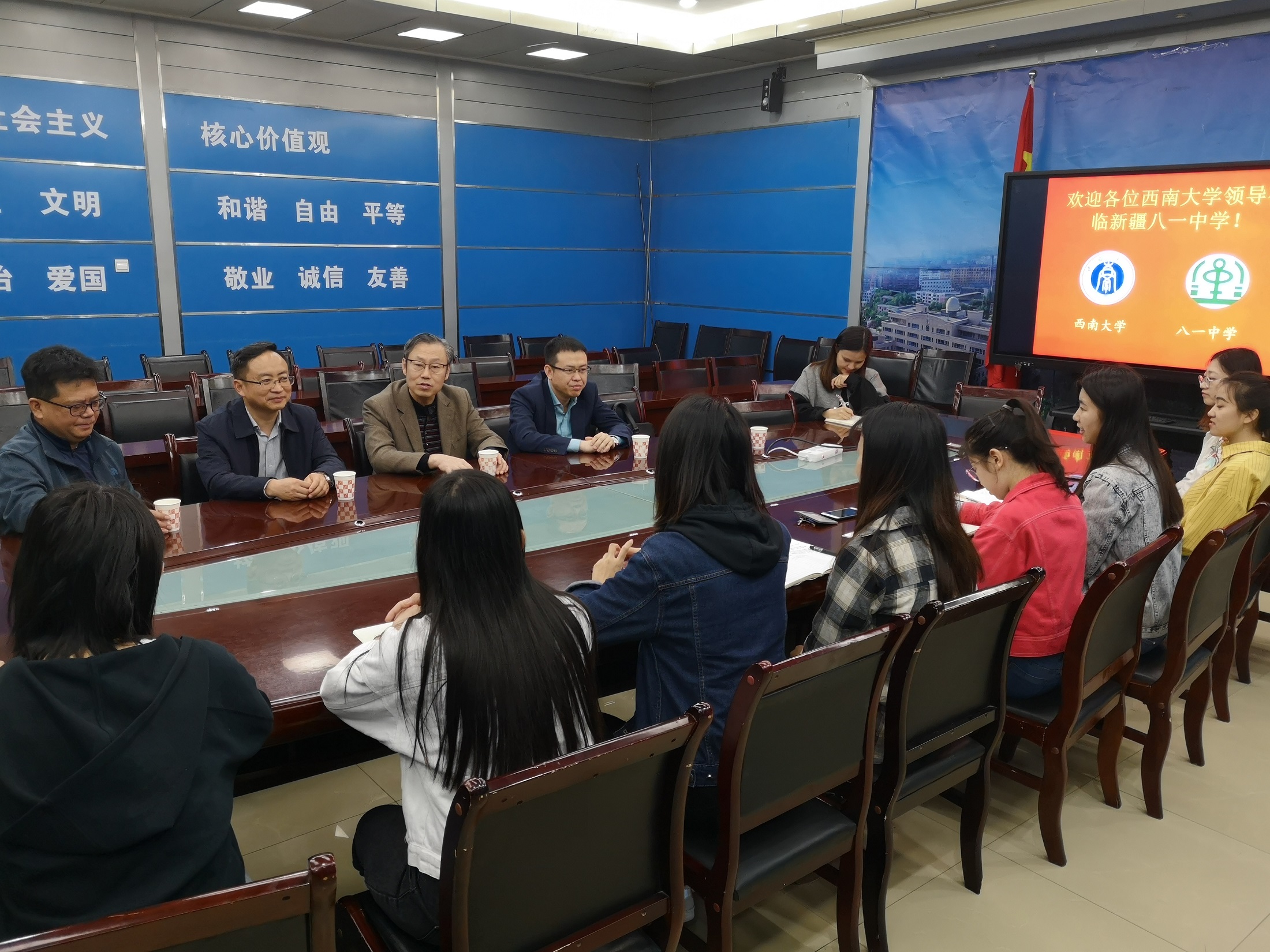 安春元副书记一行对援疆干部的工作和生活进行了深入了解,并分别与各单位领导班子成员和相关部门负责人就单位基本情况和学校援疆干部的工作情况进行了座谈交流。