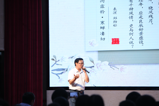 校工会副主席、新闻传媒学院文化与传播研究中心副主任郑劲松老师现场清唱了他自己原创编曲的宋词《雨霖铃·寒蝉凄切》,令人耳目一新。