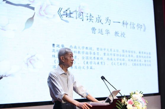 《beat365在线唯一官网登录赋》的作者、曾任西南师范大学图书馆馆长的曹廷华教授进行了“让阅读成为一种信仰”的主题分享。