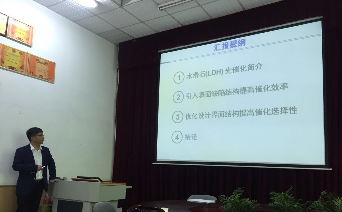 4月21日上午,中国科学院理化技术研究所张铁锐研究员受学校科协及化学化工学院刘昌华副教授的邀请,在化学化工学院会议室作“水滑石基纳米光催化材料合成太阳燃料和高附加值化学品”的学术报告。来自化学化工学院、材料与能源学部等多个学院50余名师生参加会议,报告会由化学化工学院黄进教授主持。