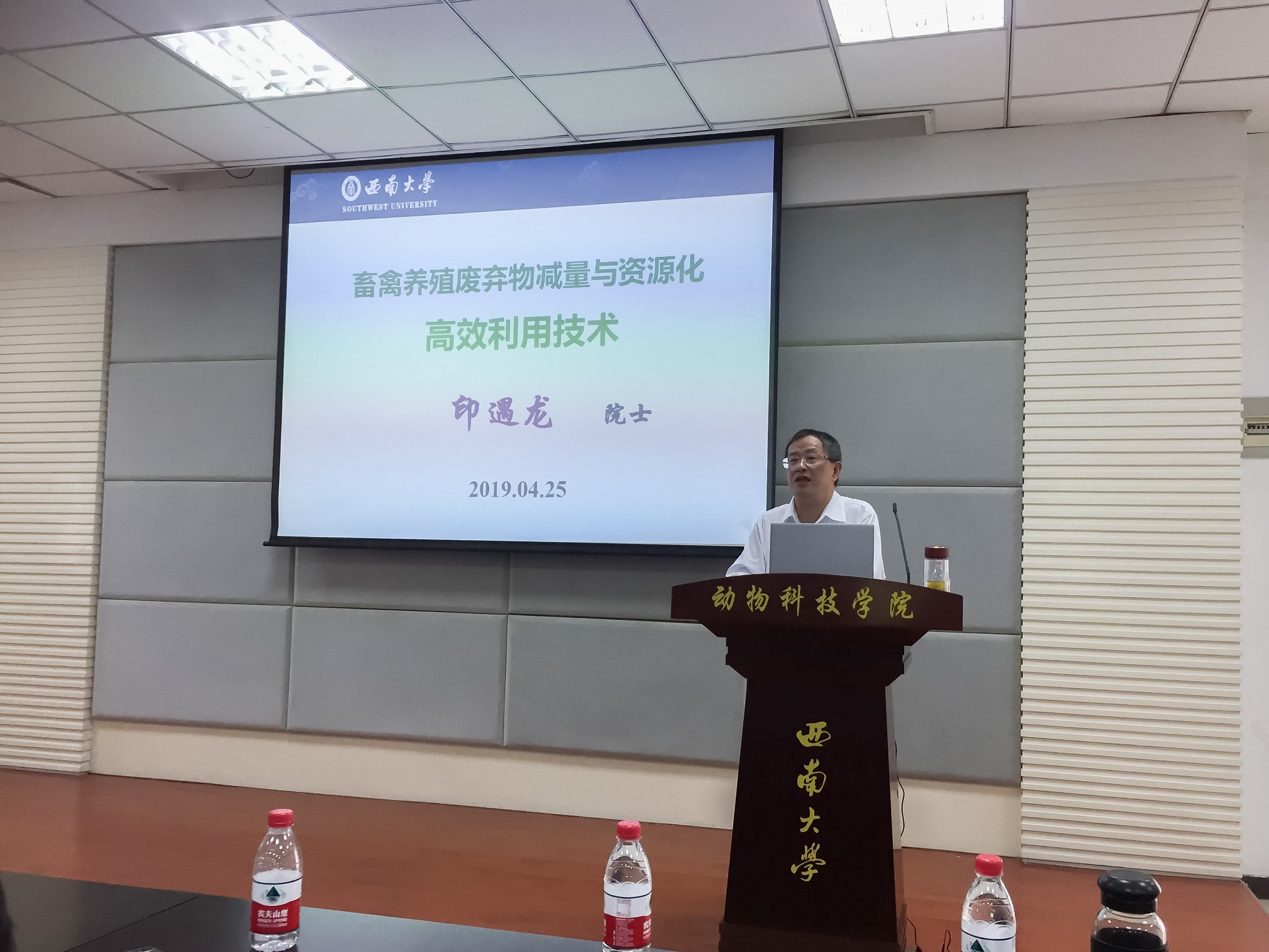 4月25日,中国工程院院士、畜禽养殖污染控制与资源化技术国家工程实验室主任印遇龙研究员应邀来校交流讲学。报告会由动物科技学院院长赵永聚教授主持。