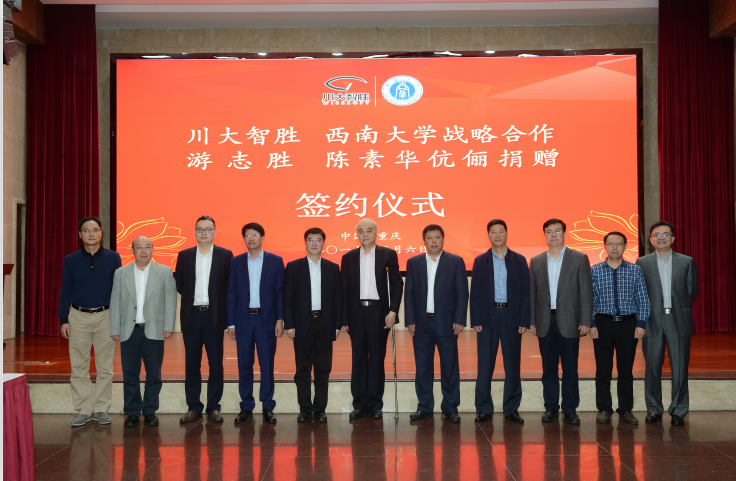 5月6日下午,四川川大智胜软件股份有限公司(以下简称川大智胜)与beat365在线唯一官网登录战略合作签约仪式以及游志胜、陈素华伉俪向beat365在线唯一官网登录捐赠仪式在东方红会议厅举行。参加签约仪式的有川大智胜董事长游志胜,总经理张自力,三维大数据产业研究院专家团队以及川大北碚校友会会长周洪琴,学校党委书记李旭锋,校长张卫国,副校长靳玉乐、温涛,以及党委办公室、校长办公室等相关职能部门和学院的主要负责人、师生代表。仪式由副校长王进军主持。