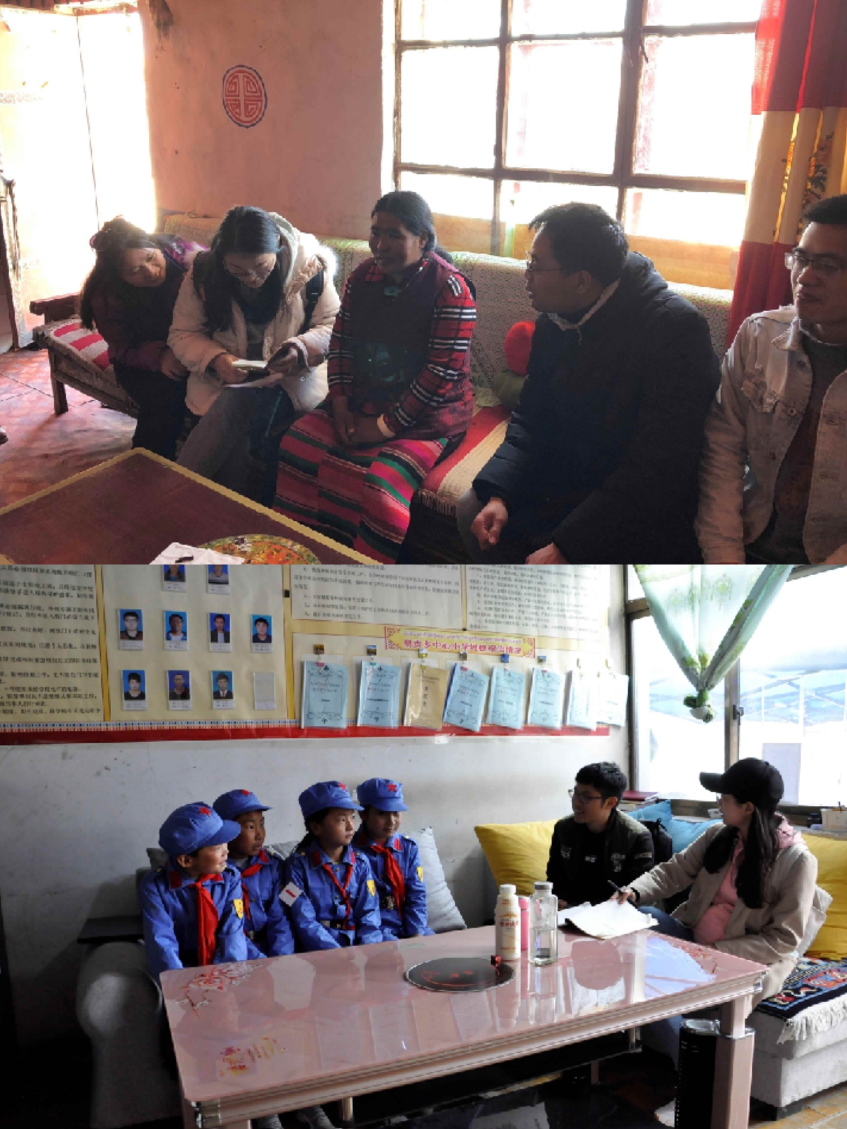 (上图)兰正彦老师及调研小组在革吉县建档立卡贫困户家中访谈