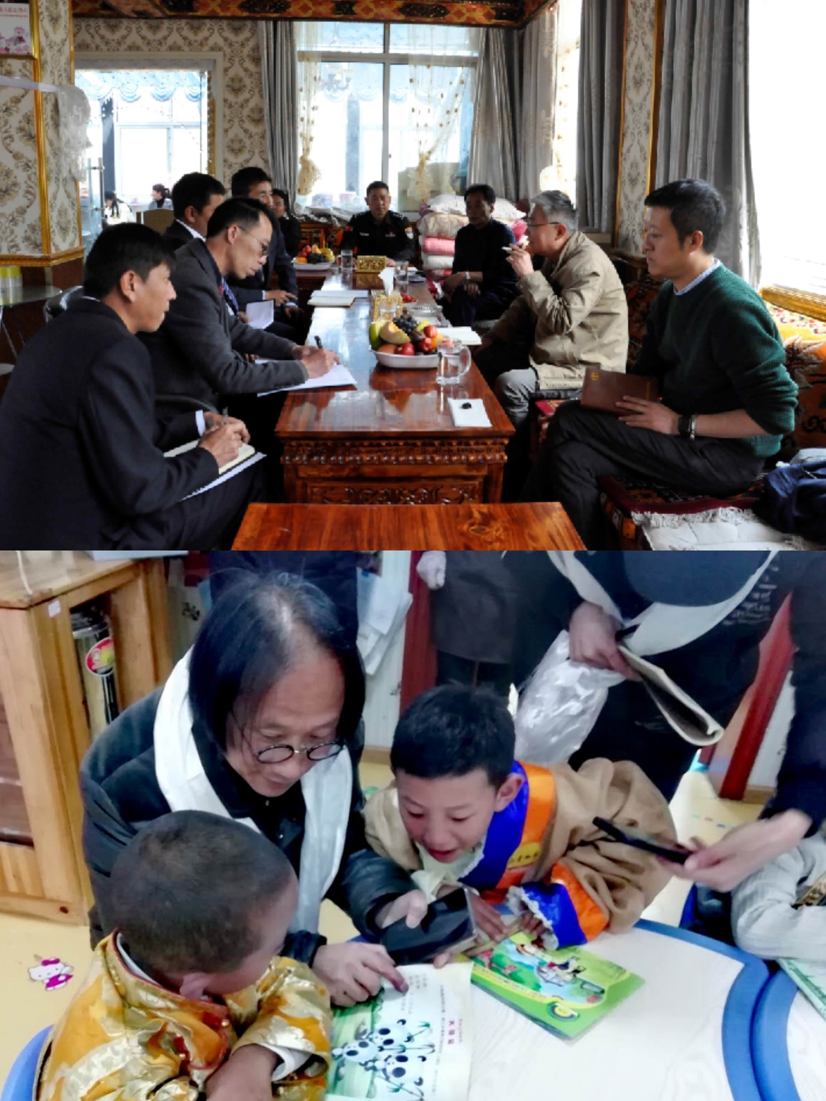 (下图)张学敏教授在那曲市色尼区双语幼儿园考察国家通用语言教育教学情况
