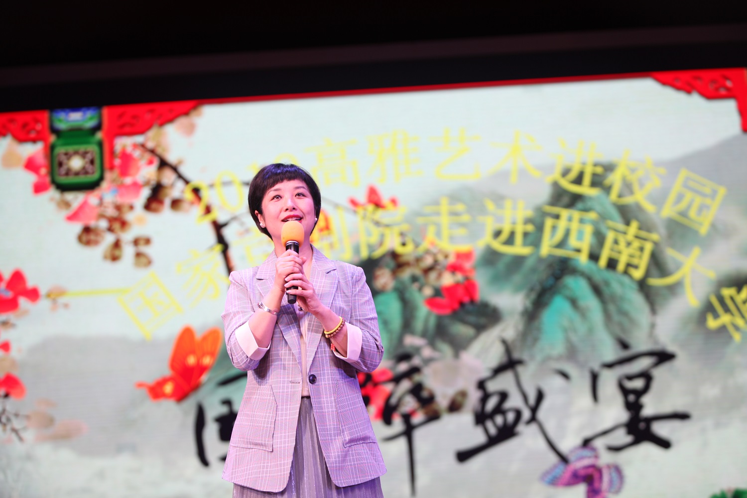演出前,国家京剧院三团副团长徐畅女士首先向学校师生表示感谢,并现场讲解京剧小知识。