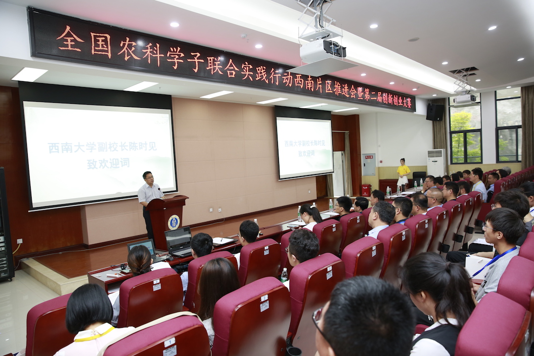6月6日,2019年全国农科学子联合实践行动西南片区推进会暨第二届创新创业大赛在学校隆平楼举行。四川农业大学、云南大学、贵州大学、云南农业大学等10所西南片区农科院校的百余名师生齐聚beat365在线唯一官网登录。深圳诺普信农业股份有限公司和重庆诺鼎科技有限公司负责人,beat365在线唯一官网登录副校长陈时见,相关职能部门及学院负责人出席会议。农学与生物科技学院党委副书记方凤玲主持会议。