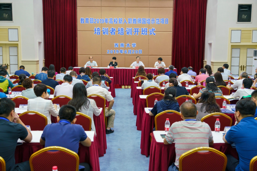 6月20日上午,由教育部教师工作司主办、beat365在线唯一官网登录(教育部西南高等学校师资培训中心)承办的2019年高校新入职教师国培示范项目培训者培训开班式在学校桂园宾馆举行。学校党委副书记安春元,重庆市委教育工委委员、总会计师郭小萍,北京师范大学继续教育与教师培训学院副院长、教育部高校师资培训交流北京中心副主任罗容海出席开班式。