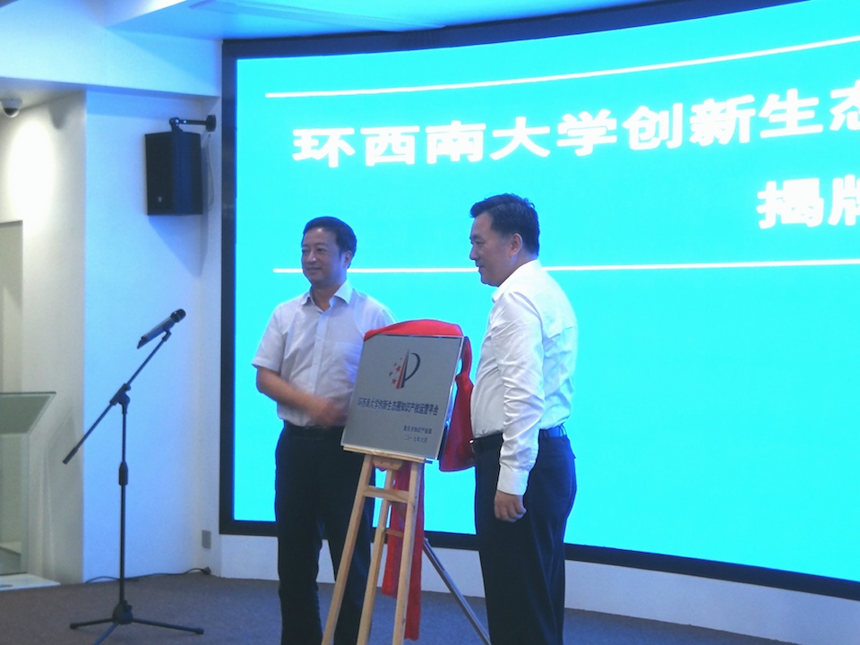 周旭书记和李雷霆局长共同为环beat365在线唯一官网登录创新生态圈知识产权运营平台揭牌。