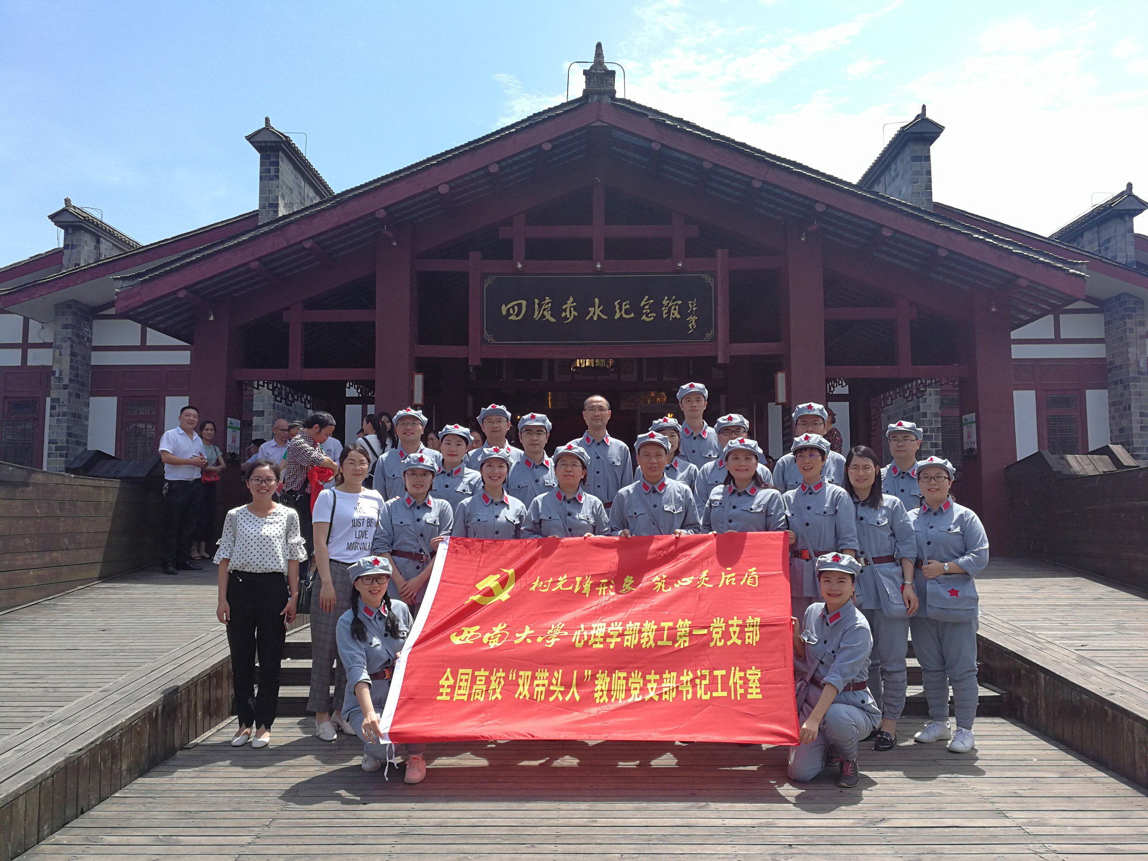 为庆祝中国共产党建党98周年,回顾和缅怀党的光辉历史,接受党性教育和革命传统再教育,6月28日-29日,首批全国高校“双带头人”教师党支部书记工作室、全国高校党建工作样板支部培育创建单位——beat365在线唯一官网登录心理学部教工第一党支部率教师党员一行20人前往中国红色名镇、红军四渡赤水之地——贵州习水土城镇开展了为期一天半的“不忘初心 牢记使命”主题教育活动。