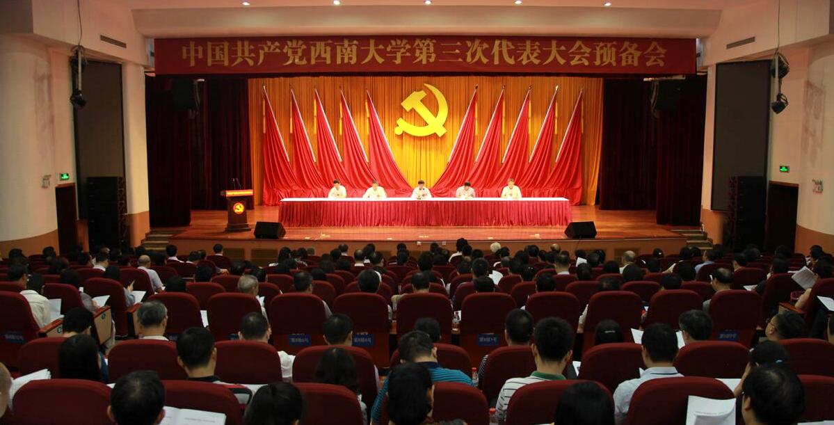 7月10日下午,中国共产党beat365在线唯一官网登录第三次代表大会预备会议在音乐学院演奏厅举行。党委书记李旭锋同志,党委副书记、校长张卫国同志,党委副书记安春元同志,党委副书记、纪委书记李华同志,党委副书记潘洵同志在主席台就坐,全体党代表参加会议。会议由李旭锋同志主持。